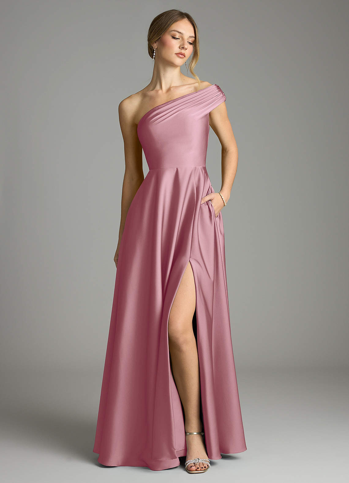 Vintage Mauve A-Line Off the Shoulder Stretch Satin Dress