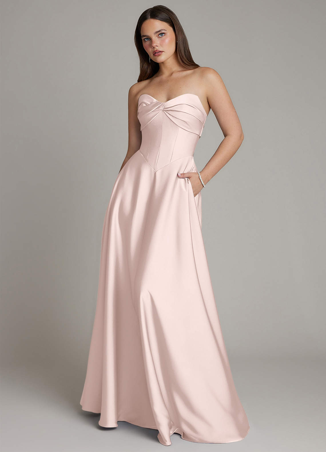 Blushing Pink A-Line Strapless Stretch Satin Dress
