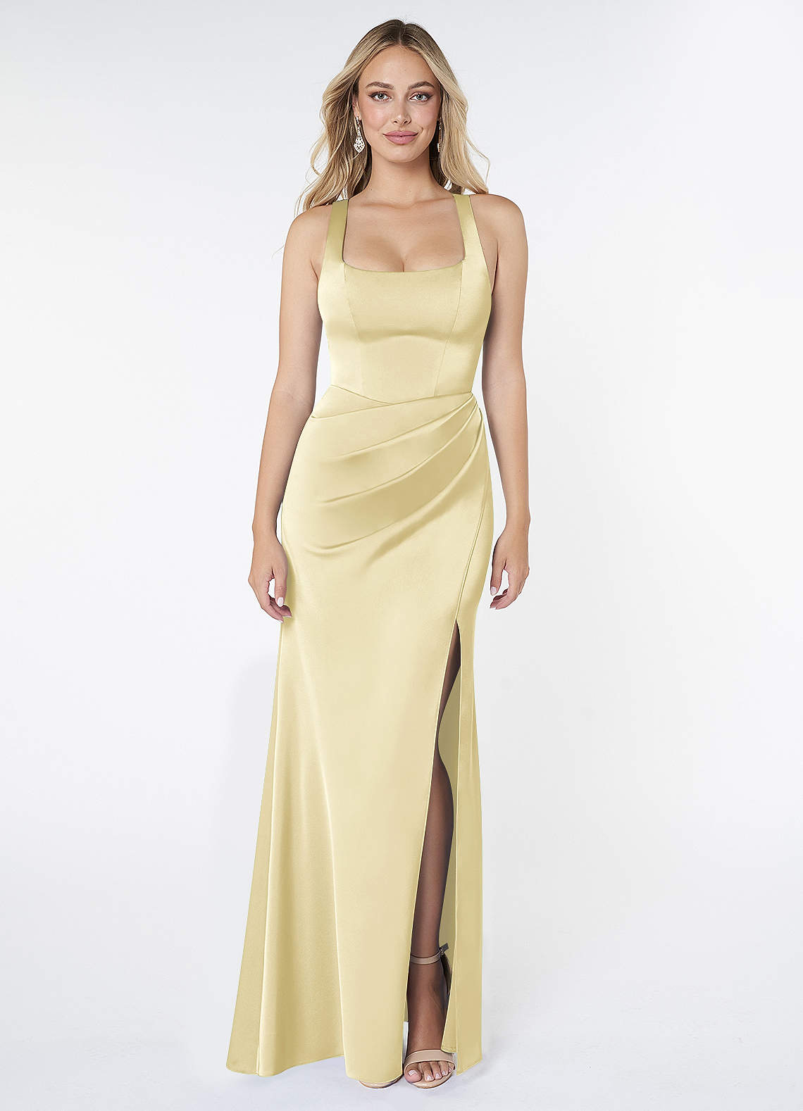 Lemon Sorbet Mermaid Pleated Stretch Satin Dress