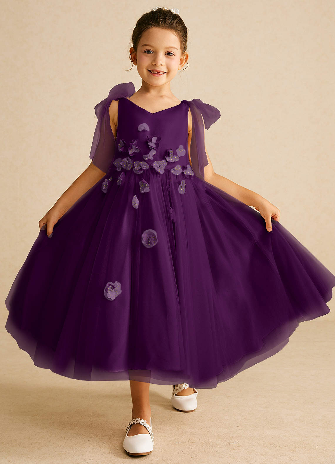 Grape A-Line Bow Matte Satin Dress