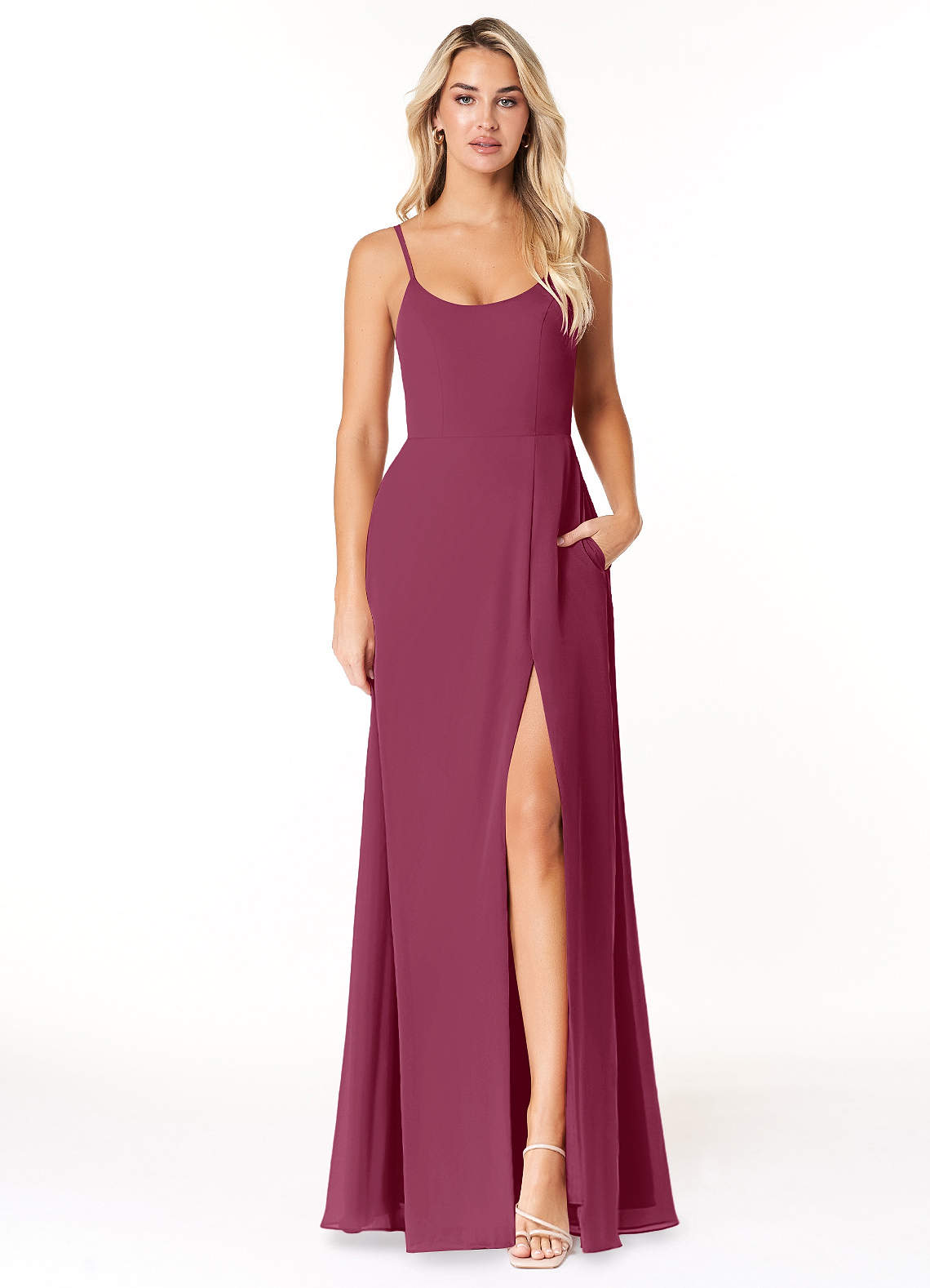 Azazie Moira Bridesmaid Dresses Mulberry A-Line Scoop Chiffon Dress image1