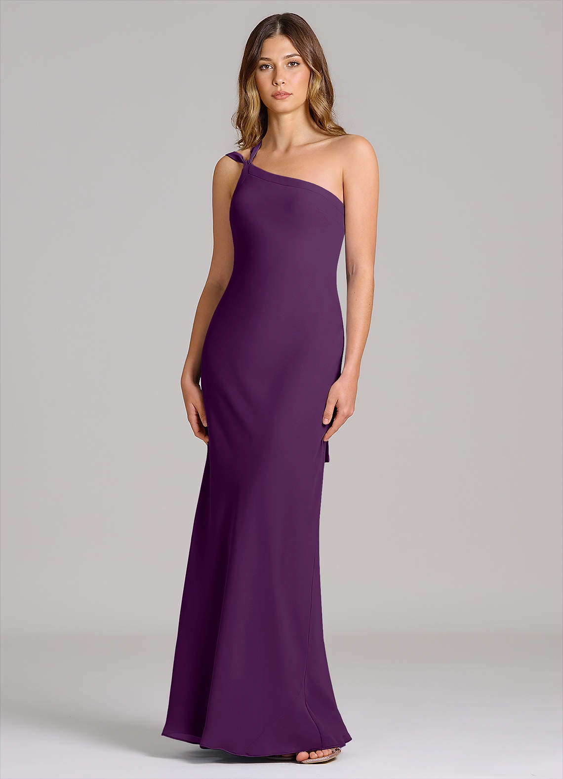 Grape Sheath One Shoulder Chiffon Dress