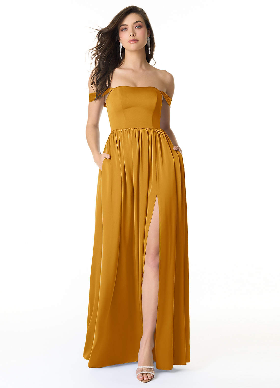 Butterscotch A-Line Off the Shoulder Stretch Satin Convertible Dress