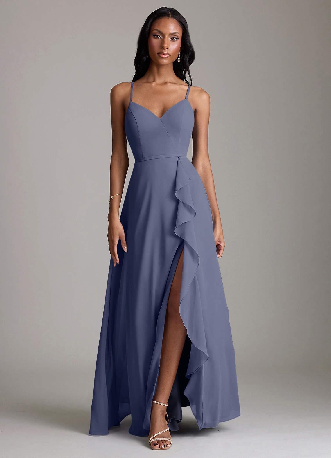 Stormy A-Line V-Neck Ruffle Chiffon Dress