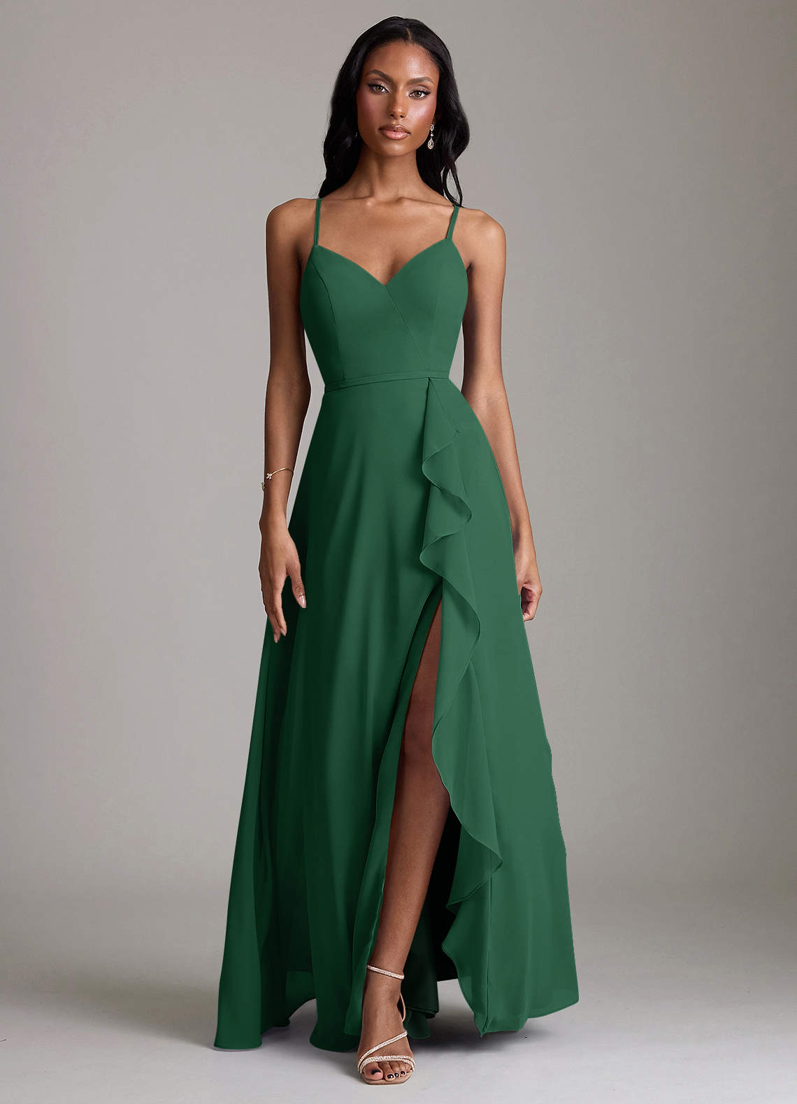 Dark Green A-Line V-Neck Ruffle Chiffon Dress