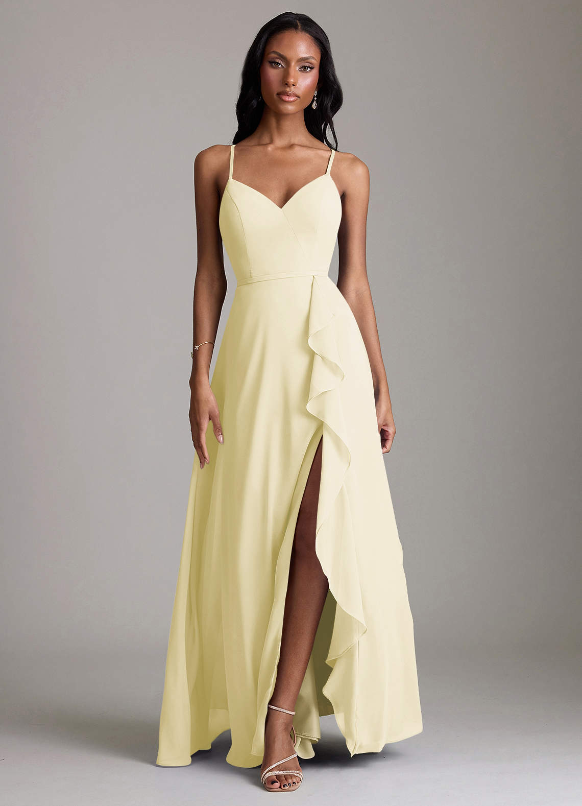 Lemon Sorbet A-Line V-Neck Ruffle Chiffon Dress