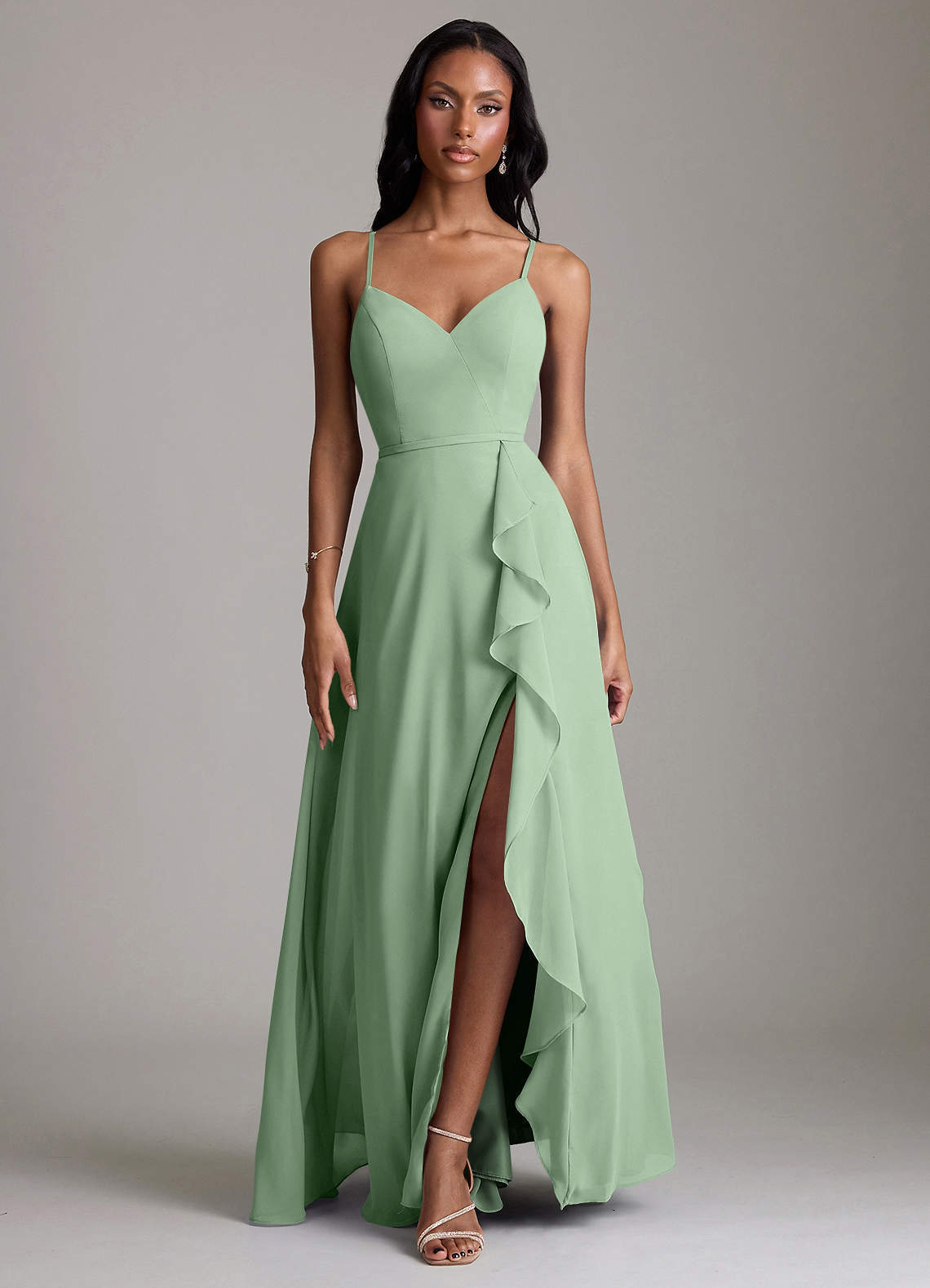 Matcha A-Line V-Neck Ruffle Chiffon Dress