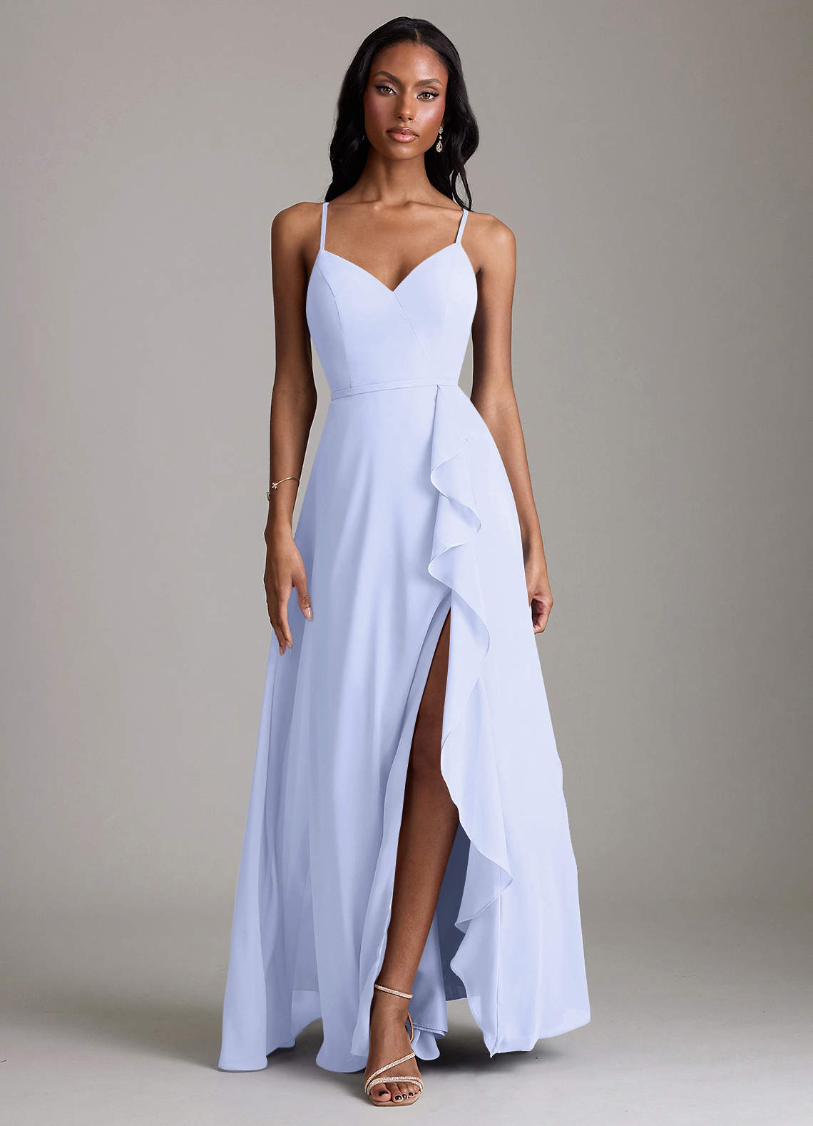 Lavender A-Line V-Neck Ruffle Chiffon Dress