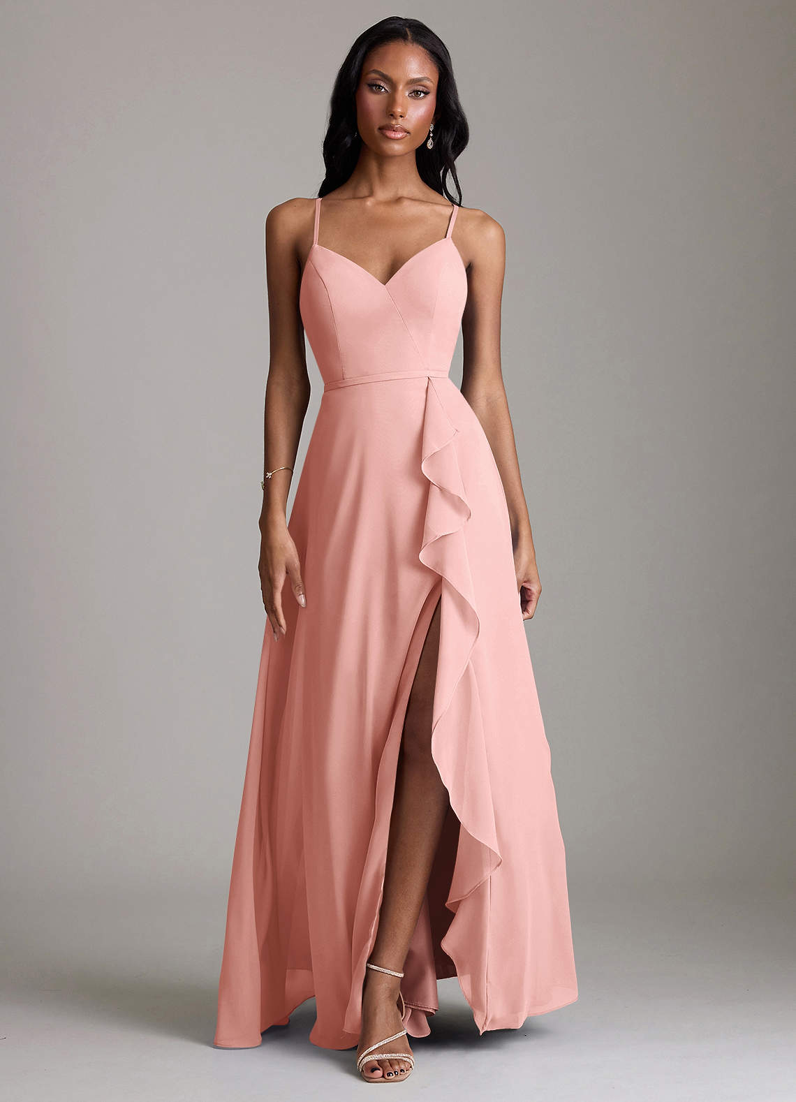Rosette A-Line V-Neck Ruffle Chiffon Dress