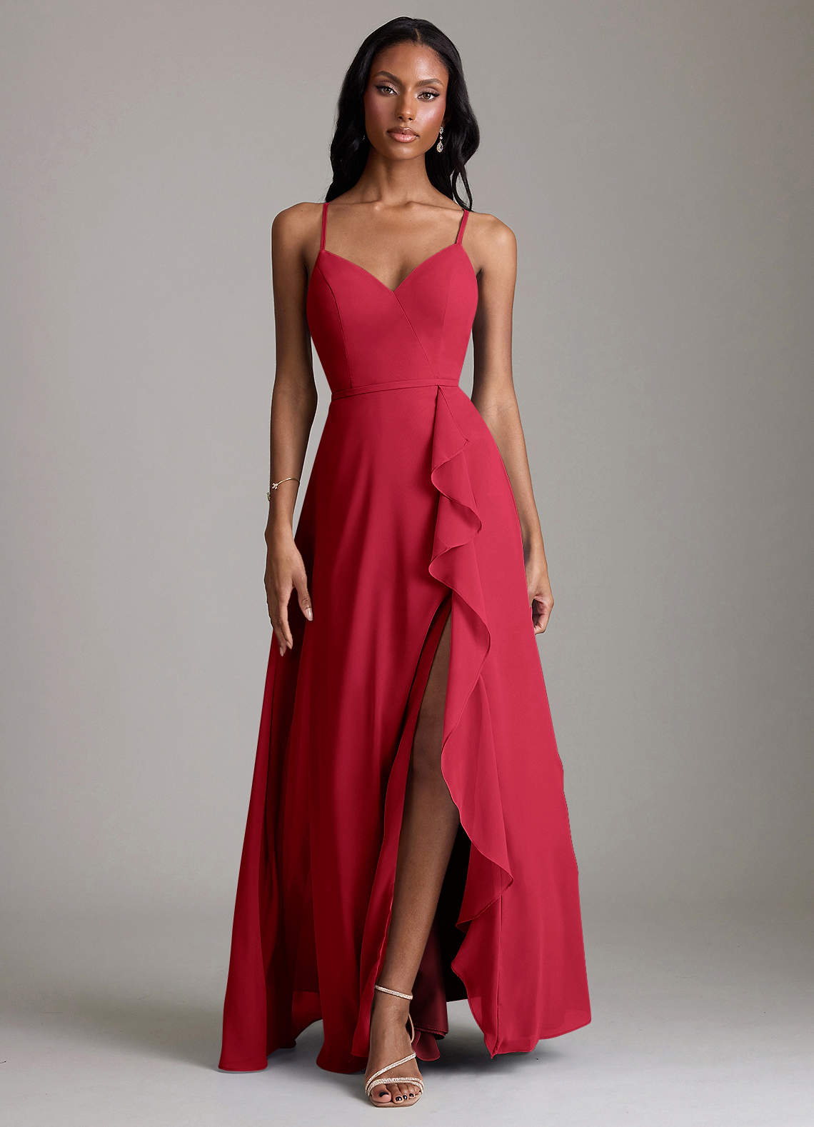 Scarlet A-Line V-Neck Ruffle Chiffon Dress