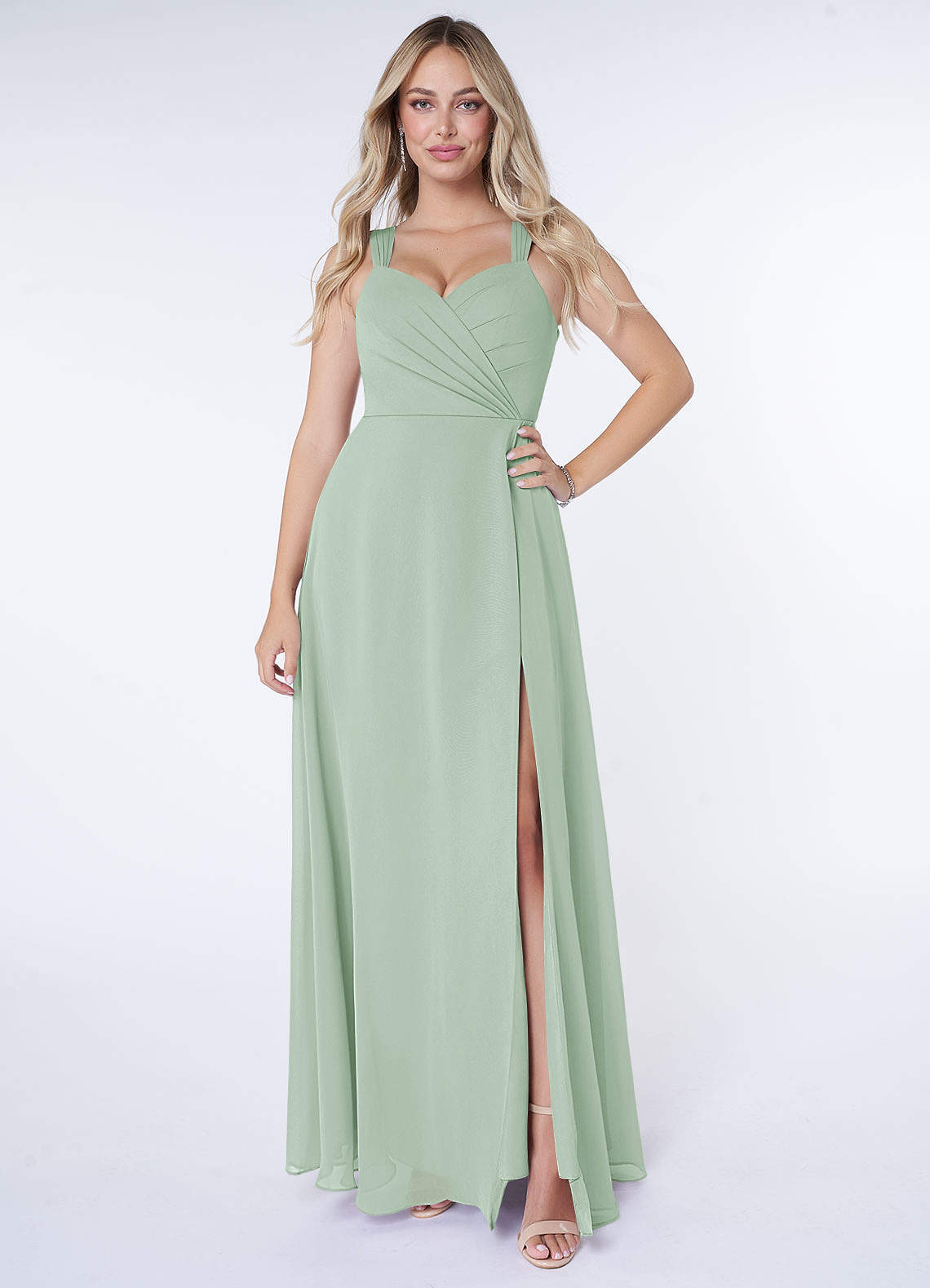 Azazie Nahrin Final Sale Agave A-Line V-Neck Pleated Chiffon Dress image1