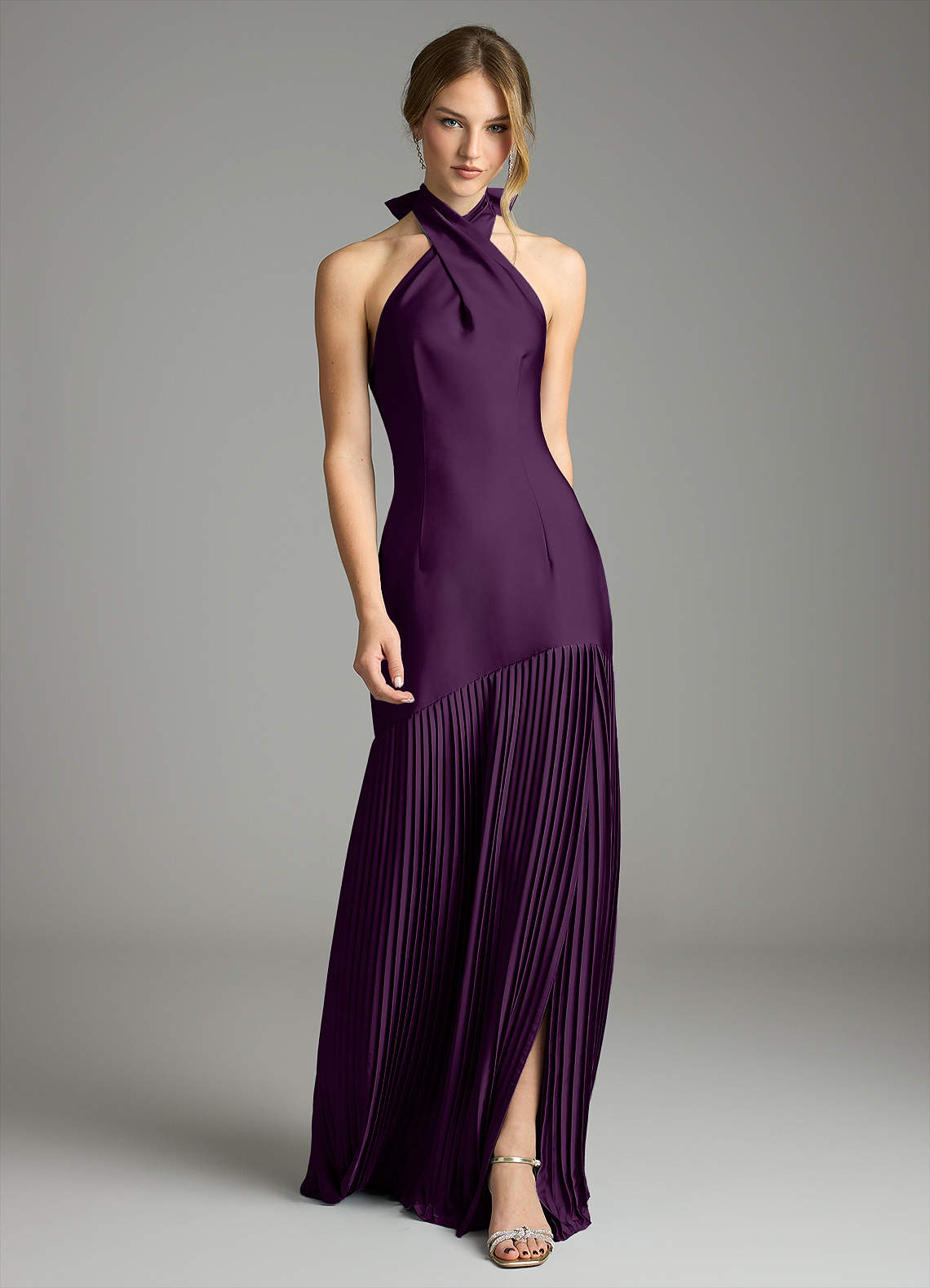 Grape A-Line Pleated Stretch Satin Dress