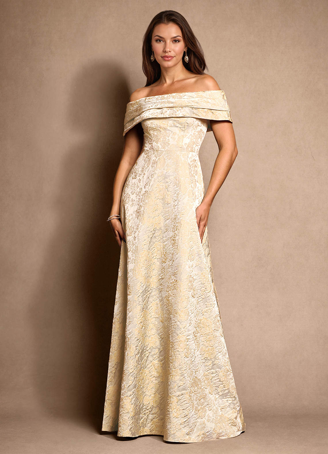 Vintage Champagne A-Line Pleated Jacquard Dress