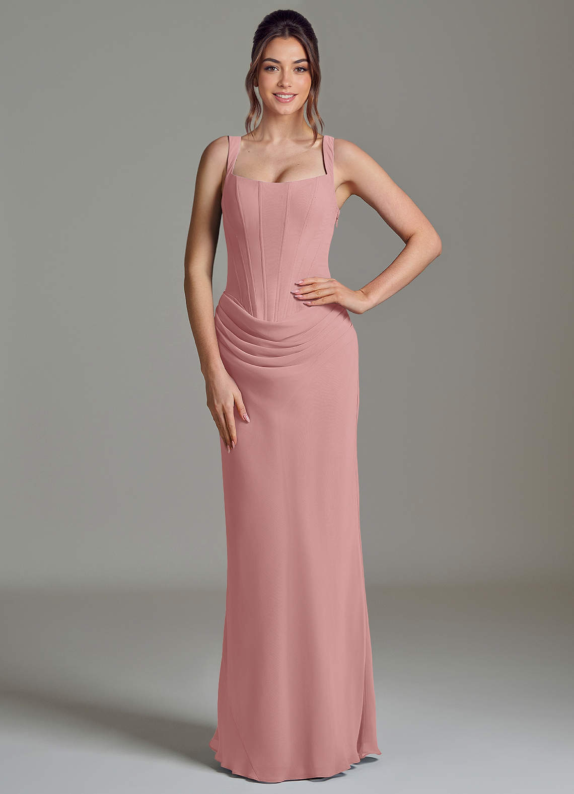 Dusty Rose Mermaid Corset Chiffon Dress