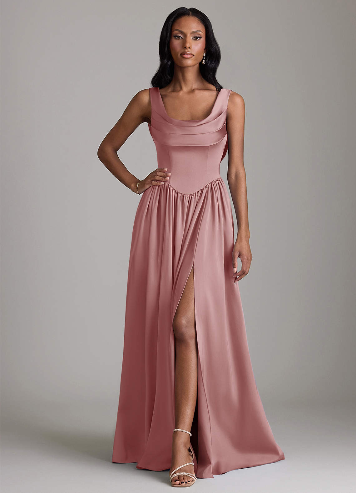 Dusty Rose A-Line with Pockets Stretch Satin Dress