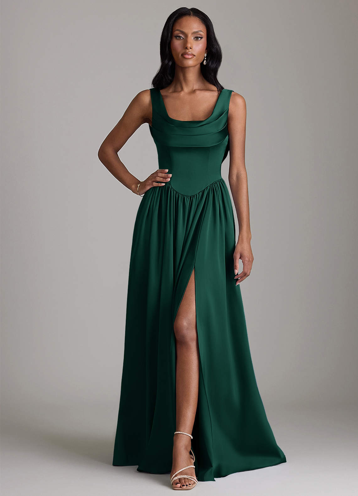 Emerald A-Line with Pockets Stretch Satin Dress