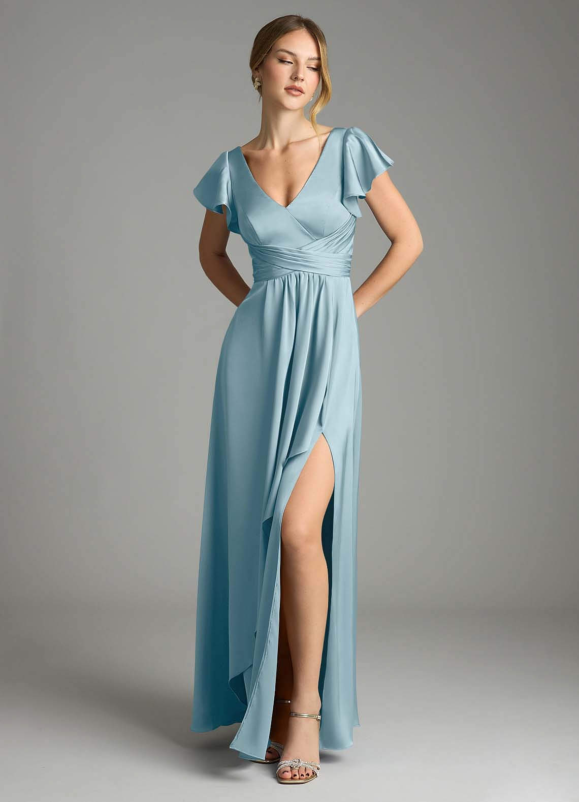 Moody Blue A-Line Stretch Satin Dress