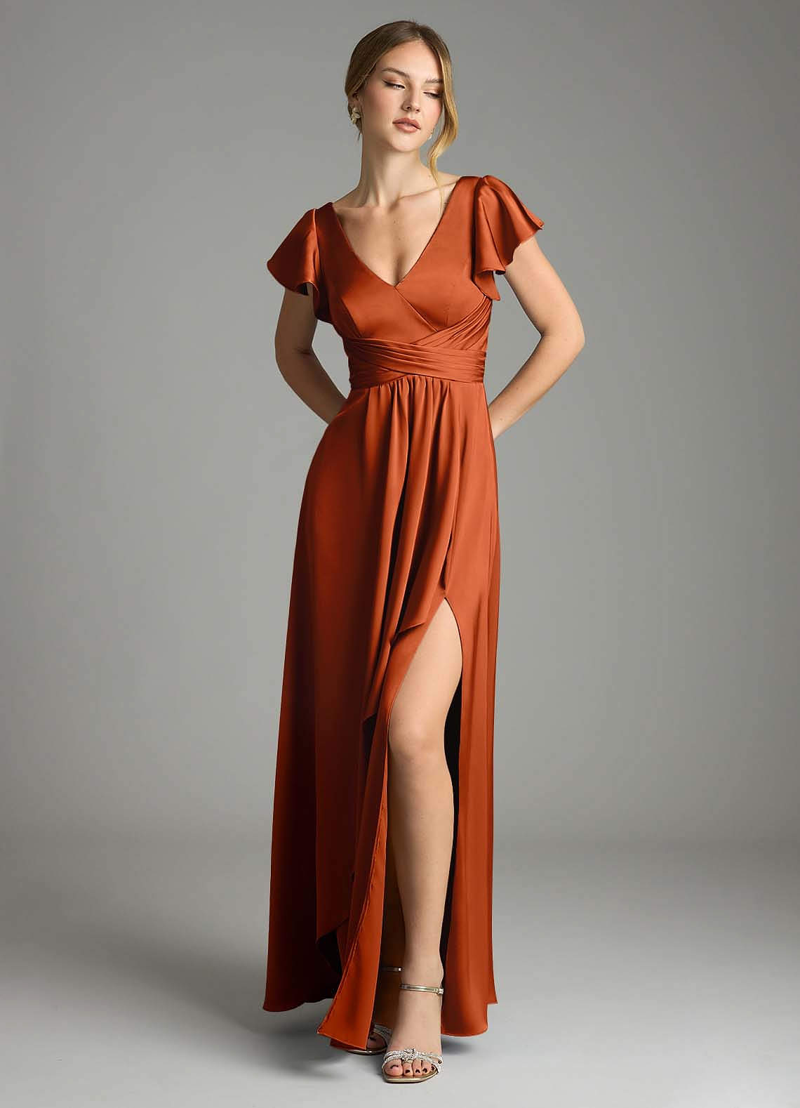 Paprika A-Line Stretch Satin Dress