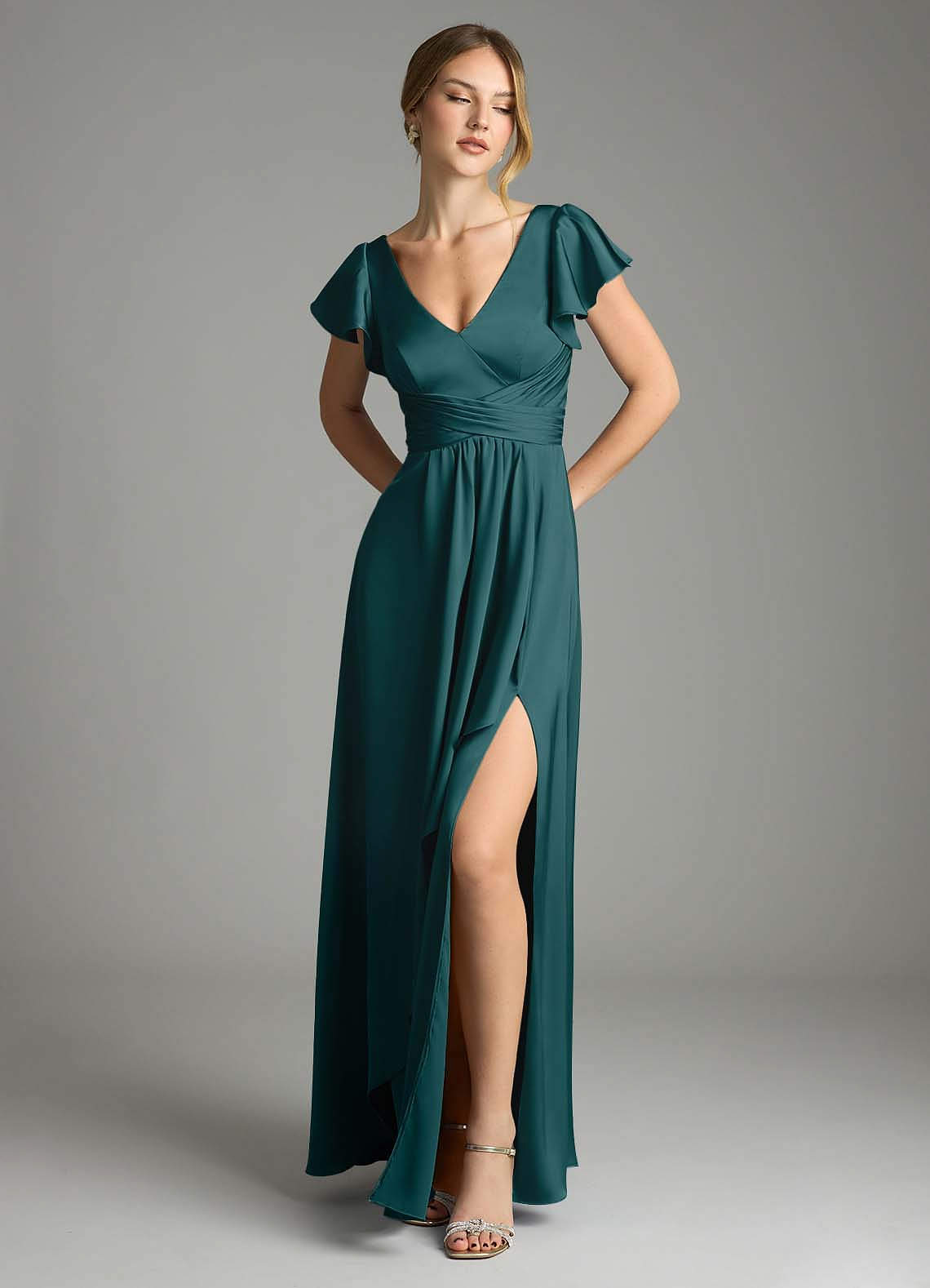 Pine A-Line Stretch Satin Dress