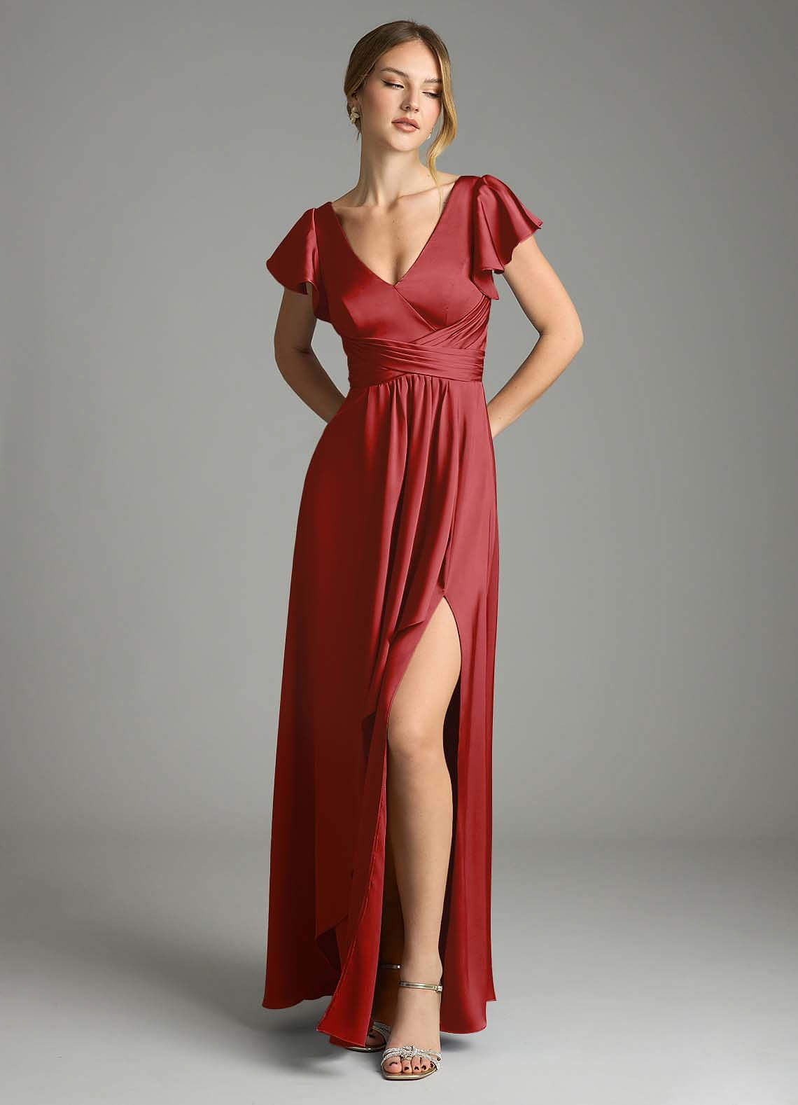Pomegranate A-Line Stretch Satin Dress