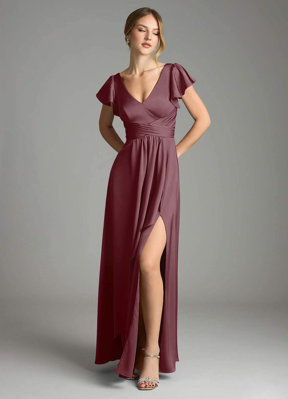 Sangria A-Line Stretch Satin Dress