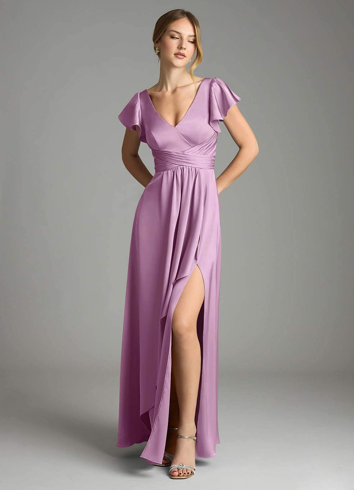 Azazie Omari Bridesmaid Dresses Wisteria A-Line Stretch Satin Dress image1