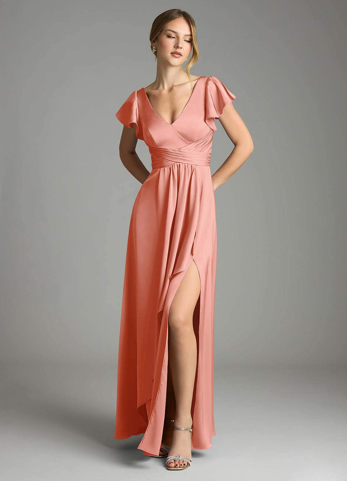 Coral A-Line Stretch Satin Dress
