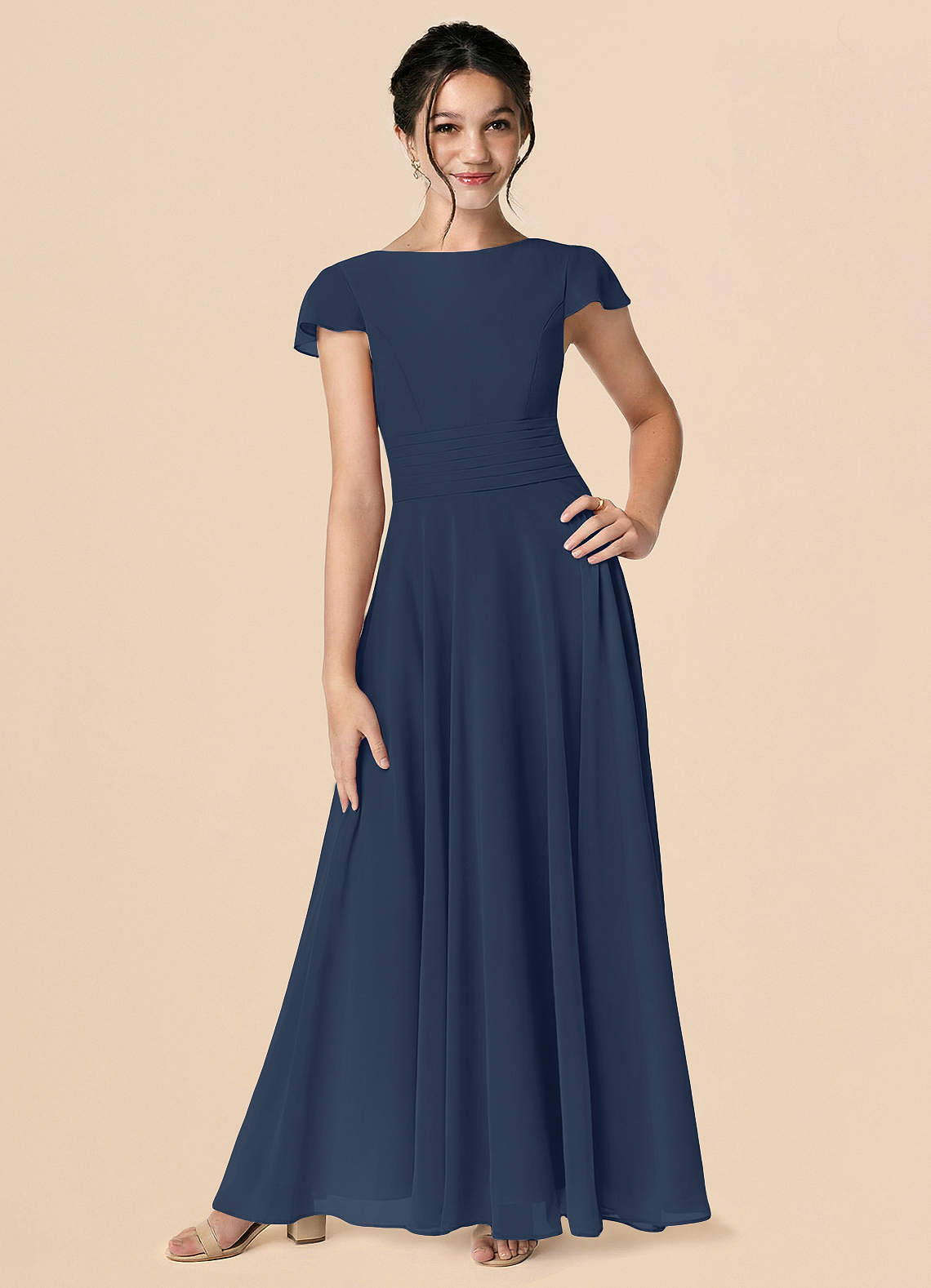 Dark Navy A-Line Bow Chiffon Dress