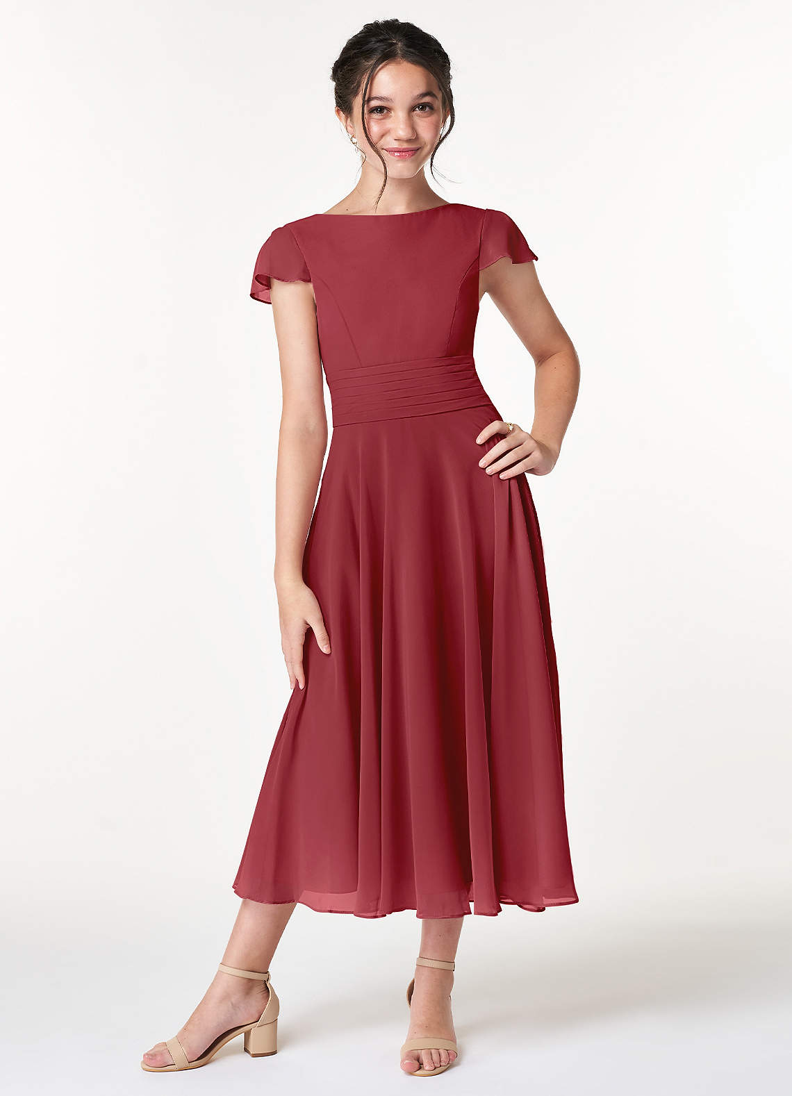 Pomegranate A-Line Bow Chiffon Dress