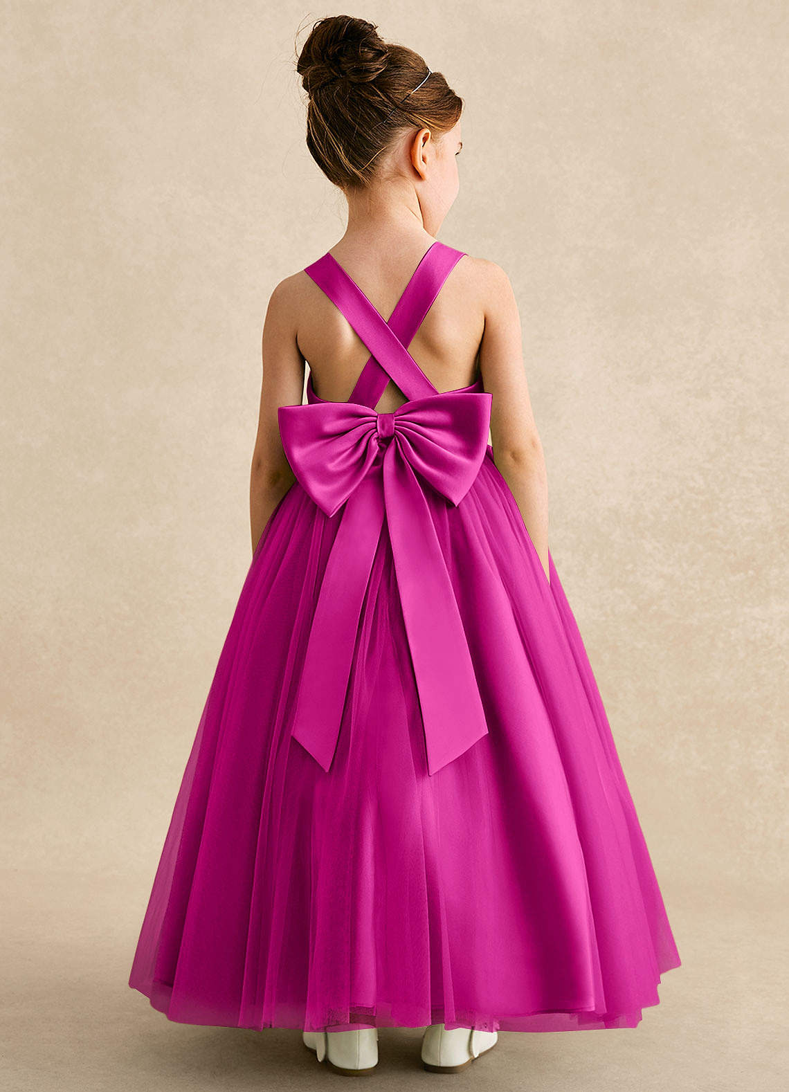 Azazie Peanut Flower Girl Dresses Fuchsia A-Line Strap Tulle Dress image1