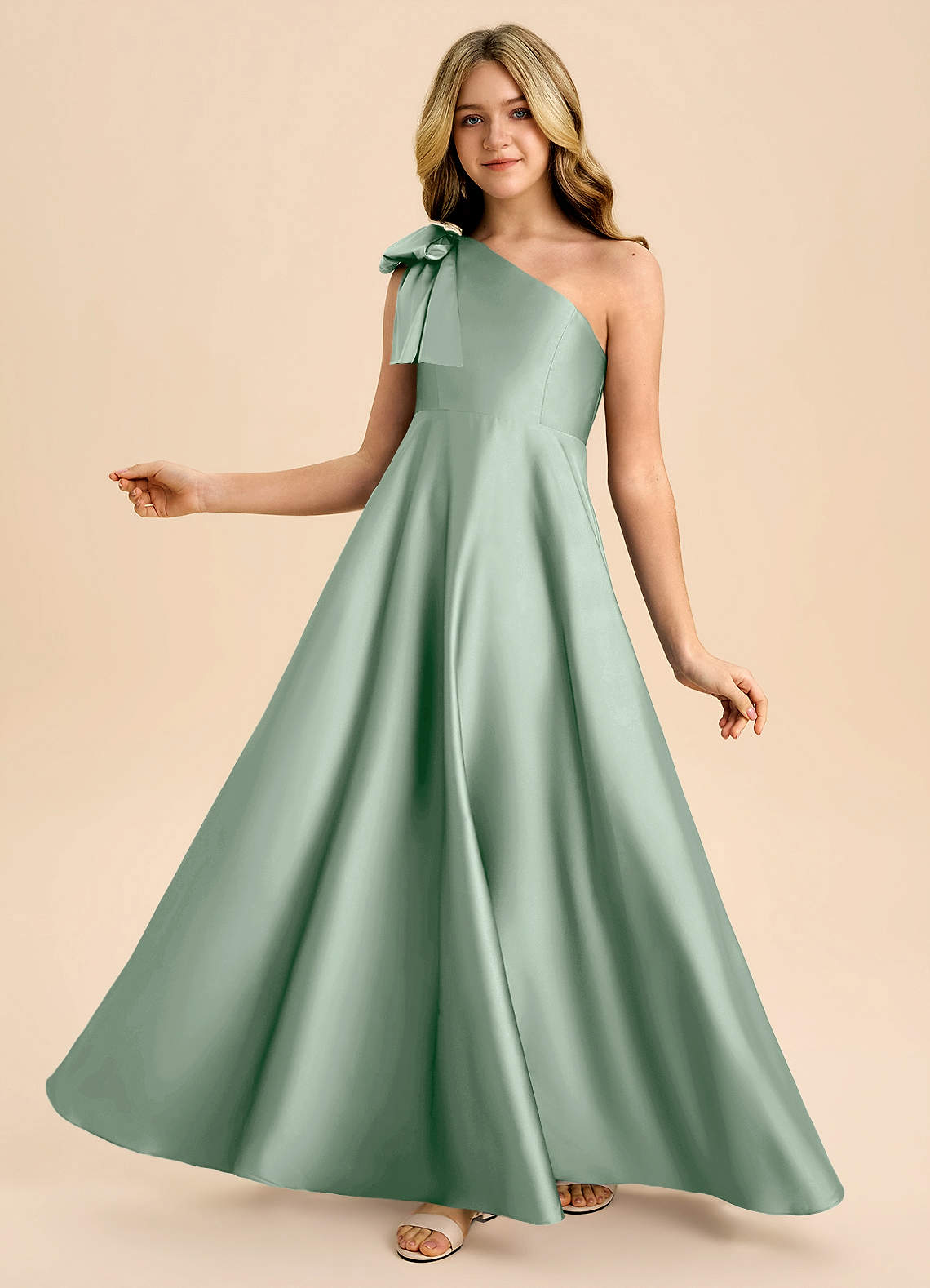 Agave A-Line Bow Stretch Satin Dress