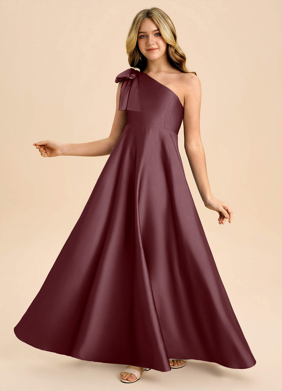 Sangria A-Line Bow Stretch Satin Dress
