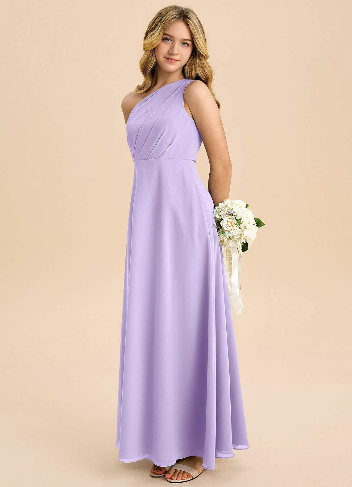 Lilac A-Line Pleated Chiffon Dress