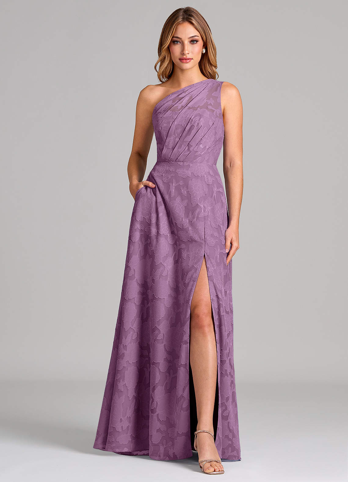 Wisteria A-Line One Shoulder Floral Burnout Dress