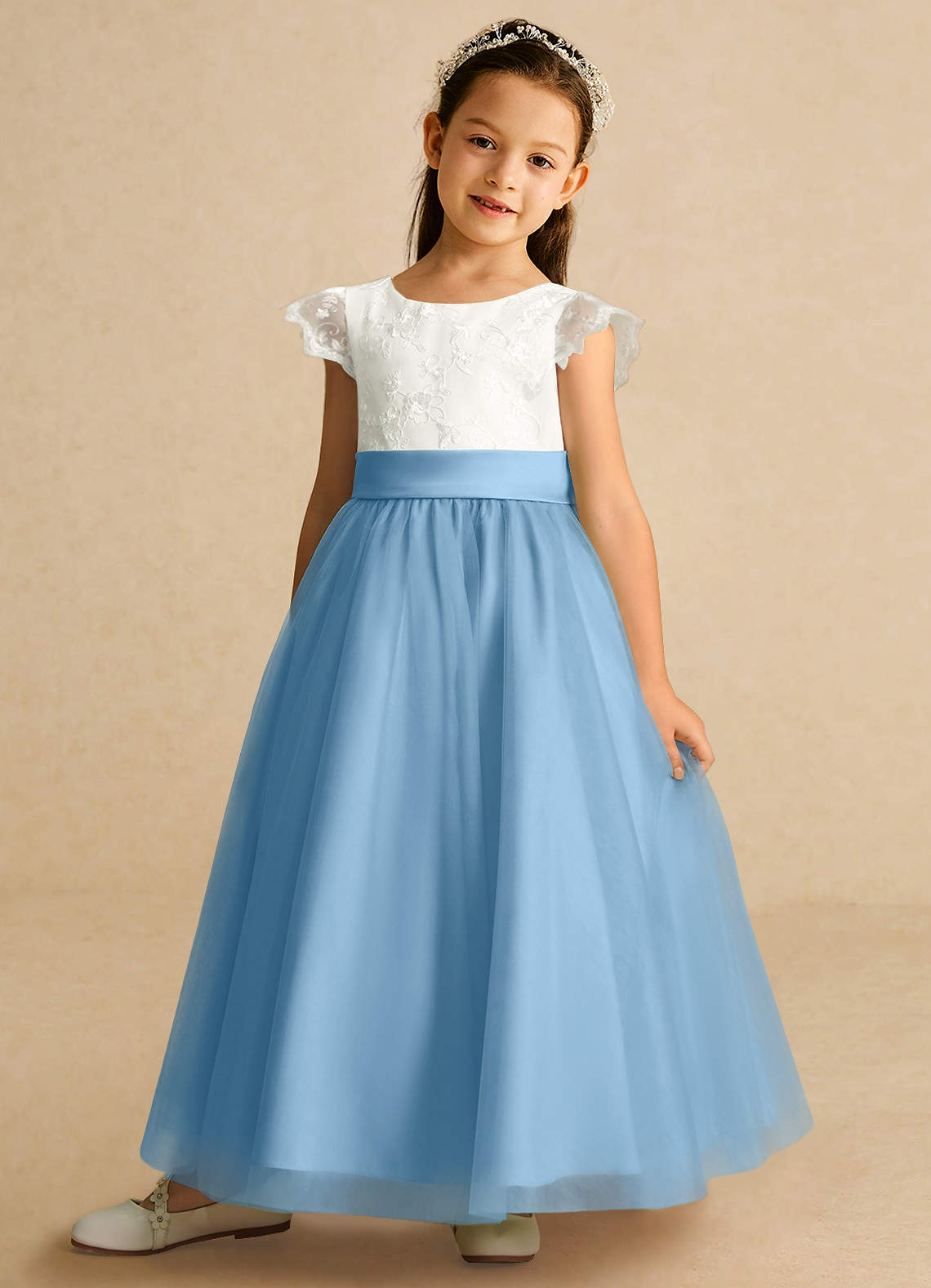 Azazie Pookie Flower Girl Dresses Steel Blue A-Line Lace Tulle Dress image1