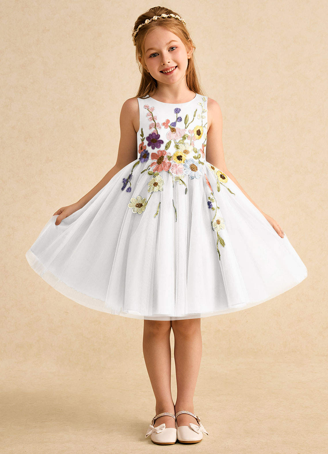 White A-Line Bow Tulle Dress