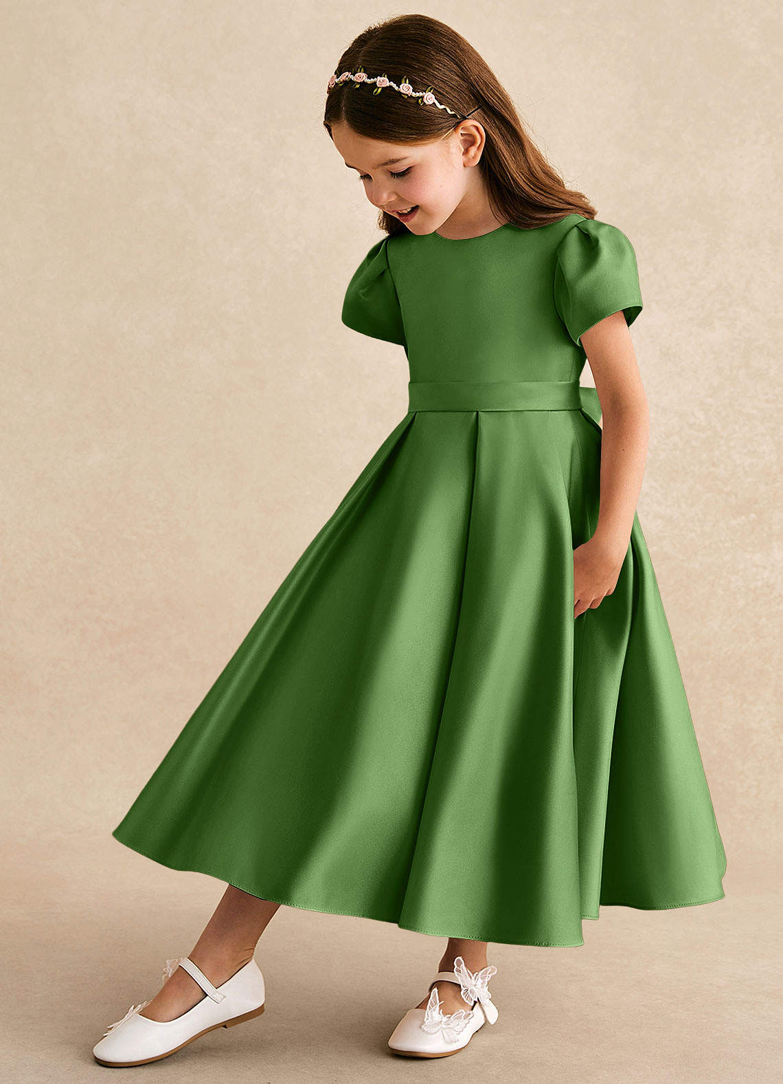 Basil A-Line Pleated Matte Satin Dress