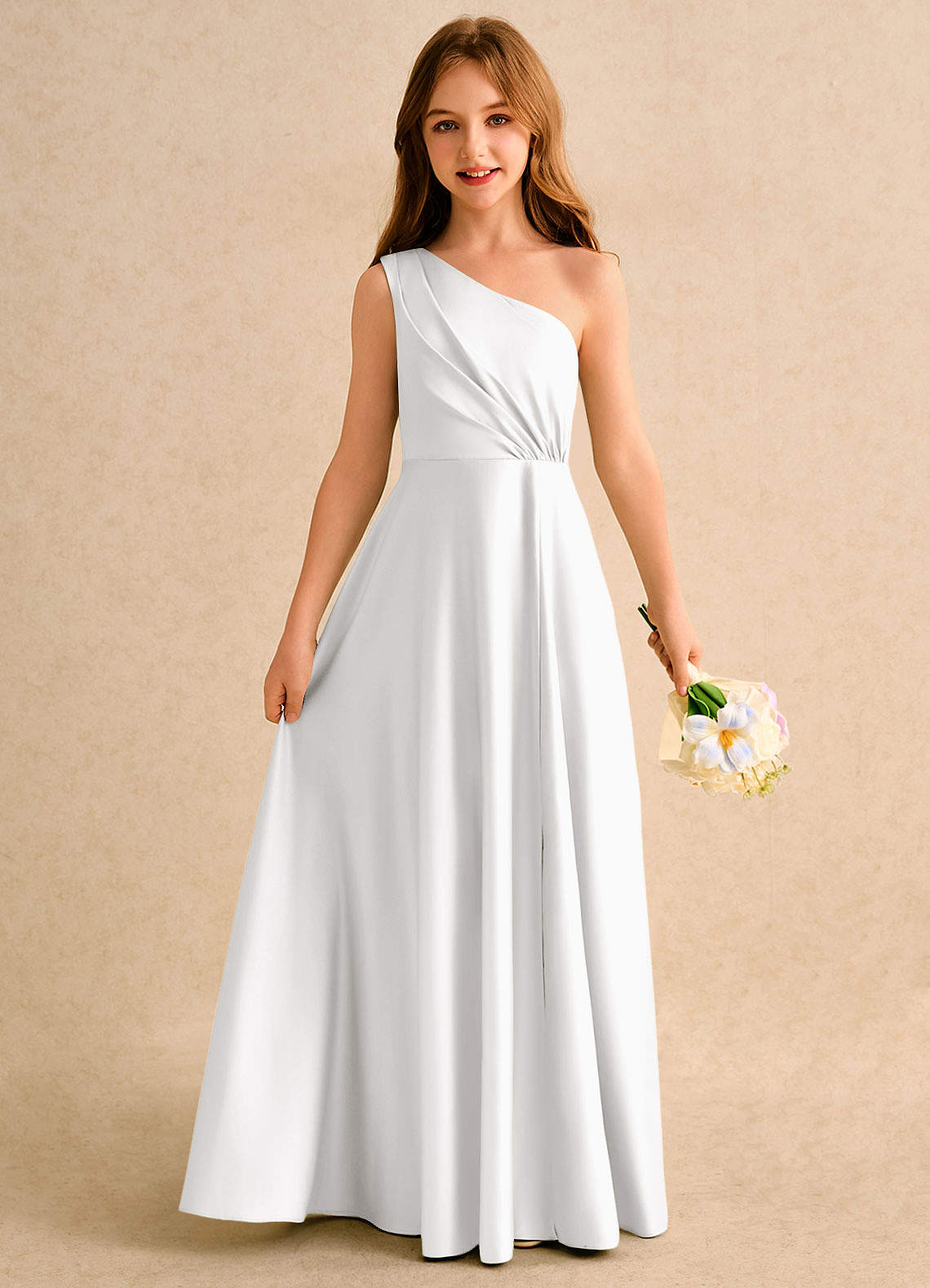 White A-Line One Shoulder Matte Satin Dress