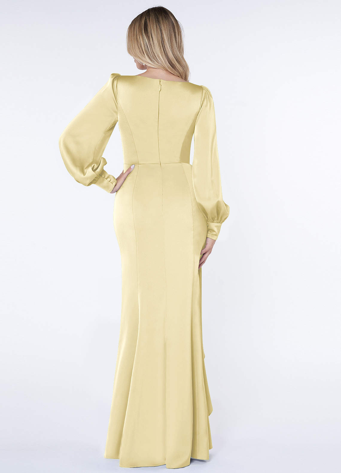 Lemon Sorbet Mermaid Long Sleeve Stretch Satin Dress