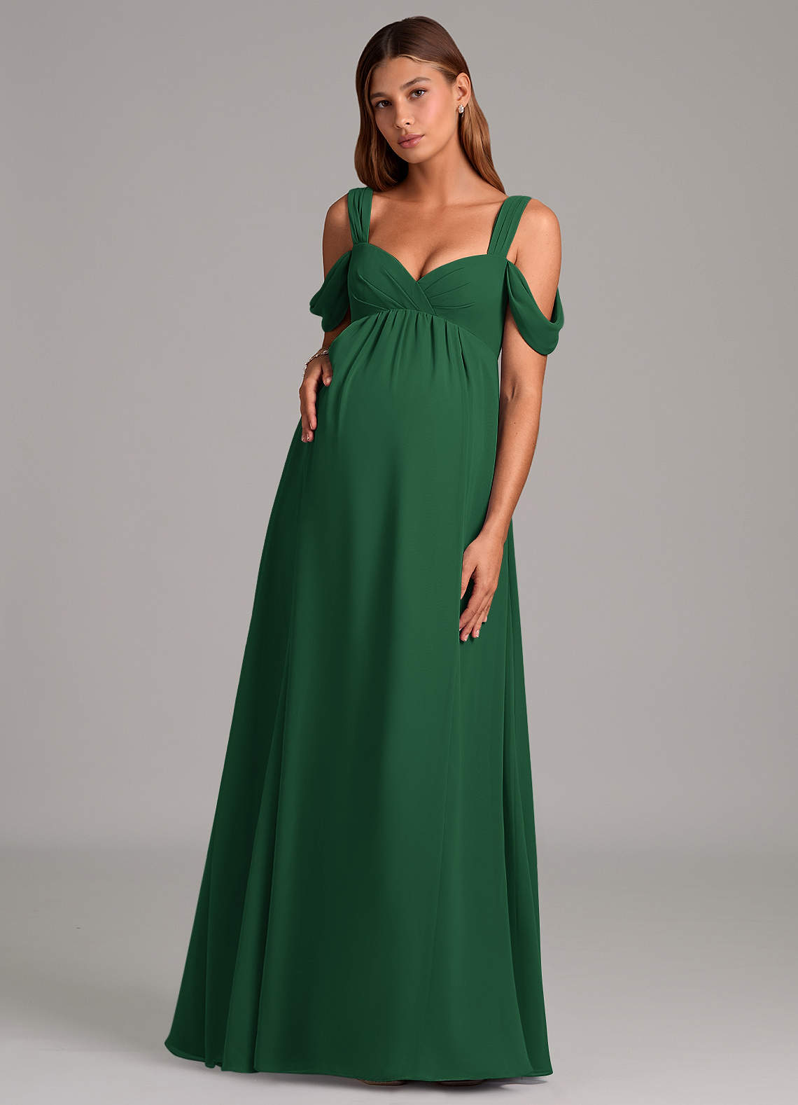 A-Line Pleated Chiffon Floor-Length Dress Dark Green