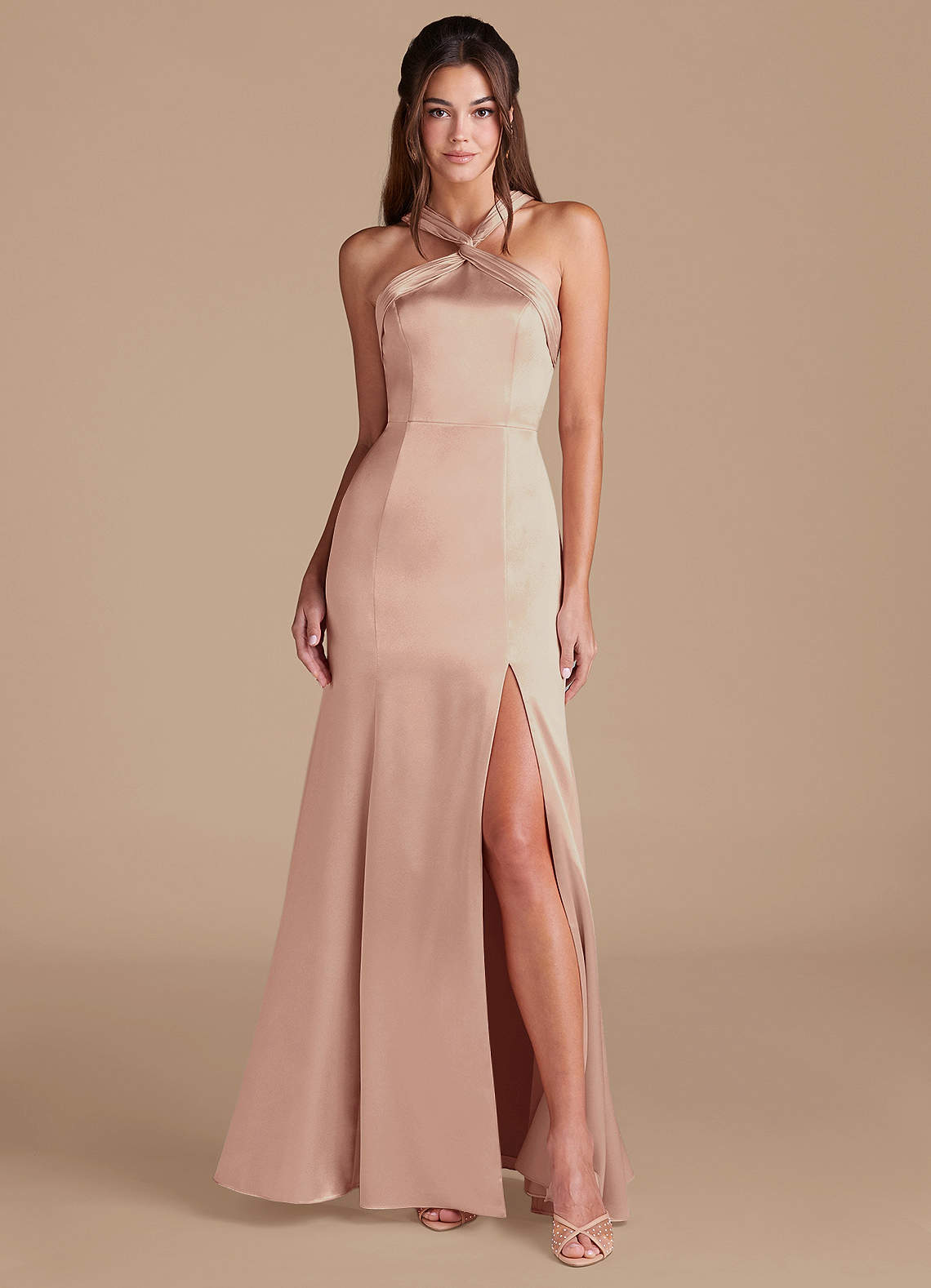 English Rose Mermaid Pleated Metallic Satin Dress