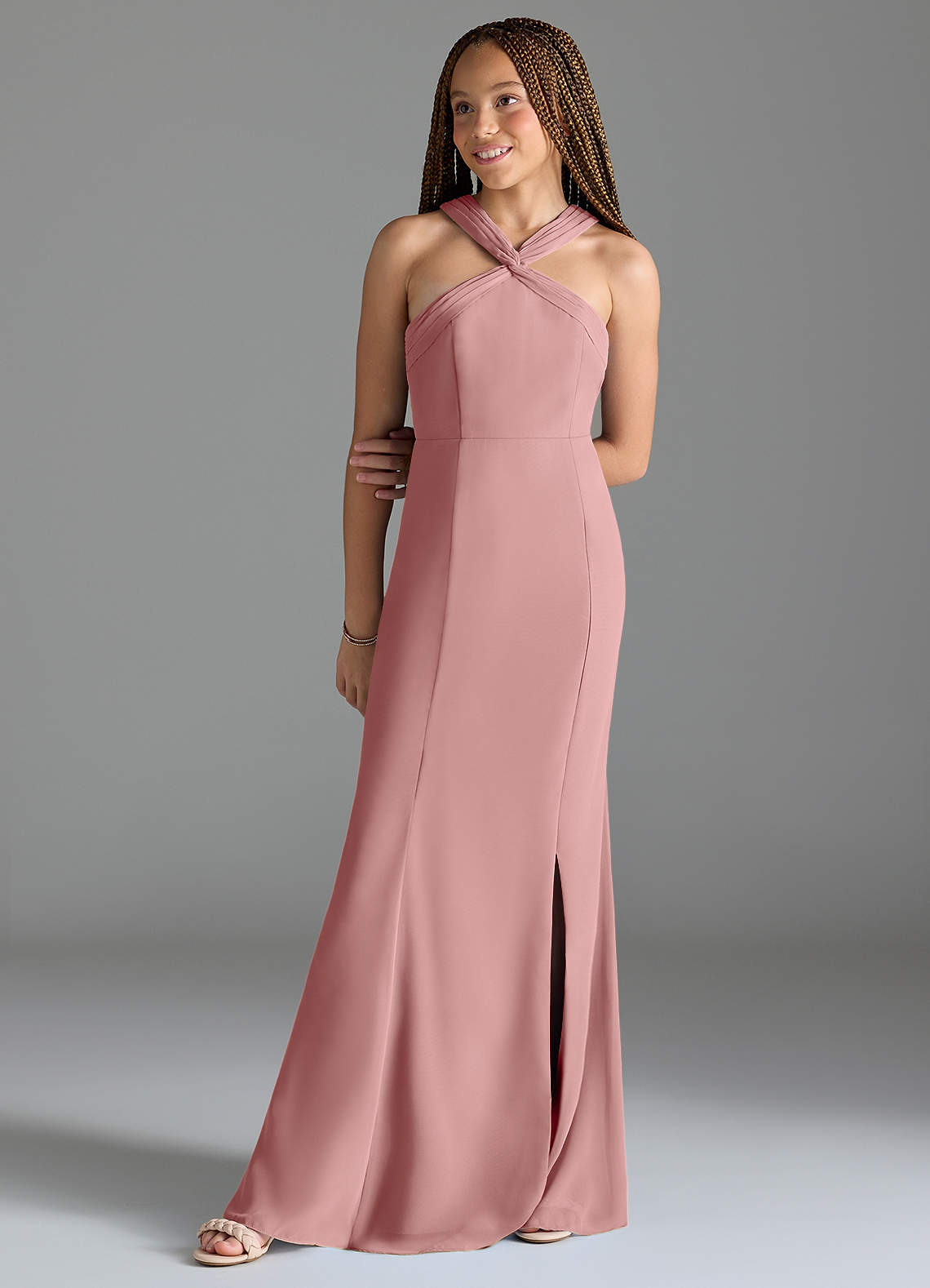 Dusty Rose Mermaid Side Slit Chiffon Dress