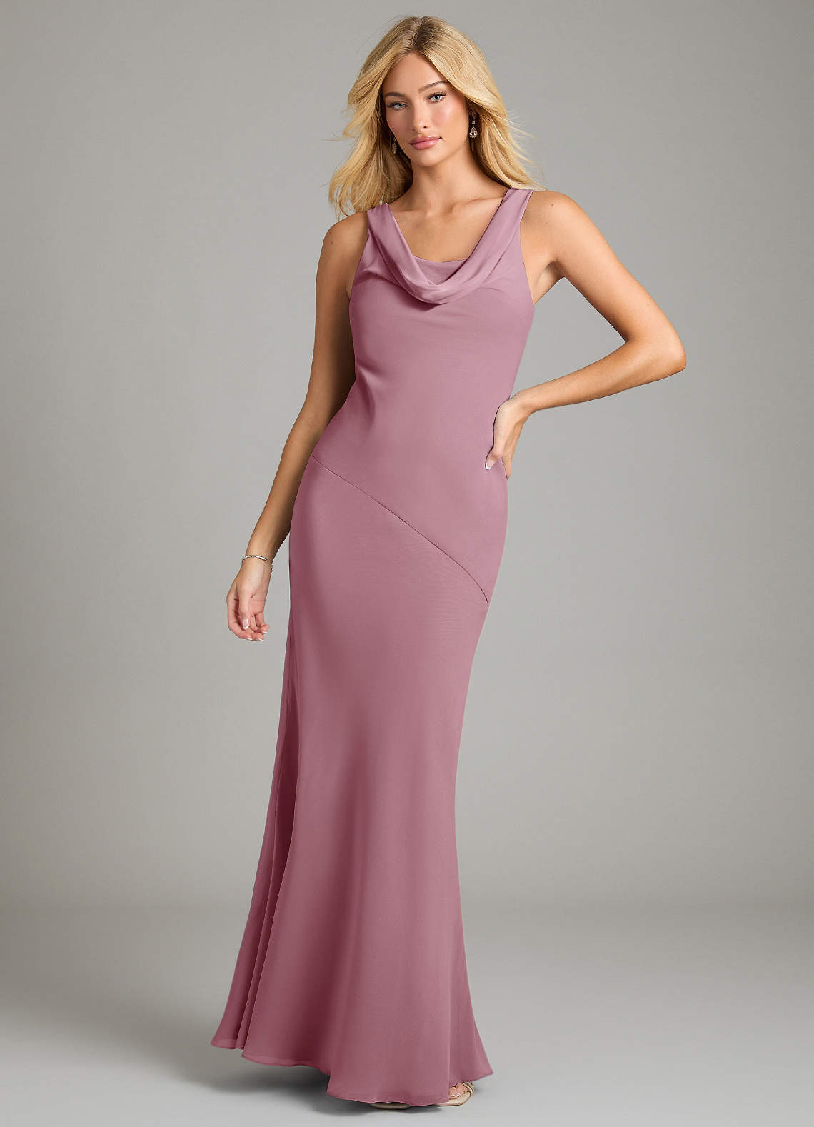 Vintage Mauve Mermaid Pleated Chiffon Dress