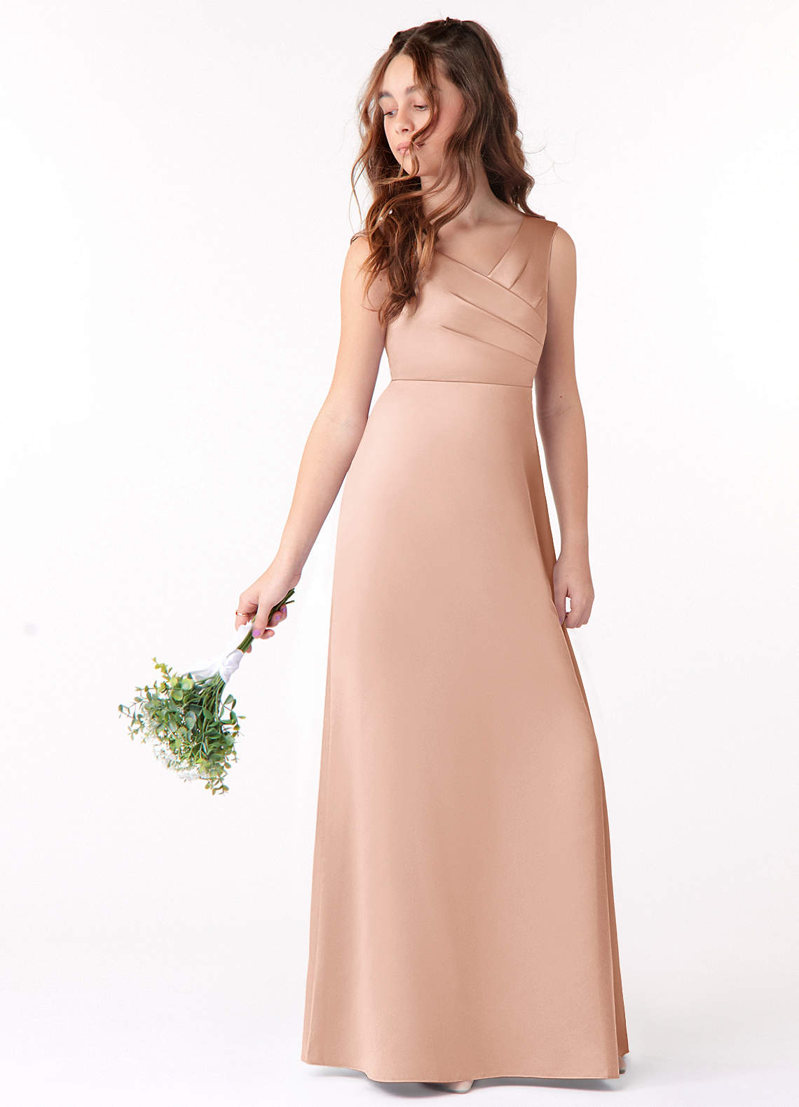 Rose Gold A-Line Pleated Stretch Satin Dress