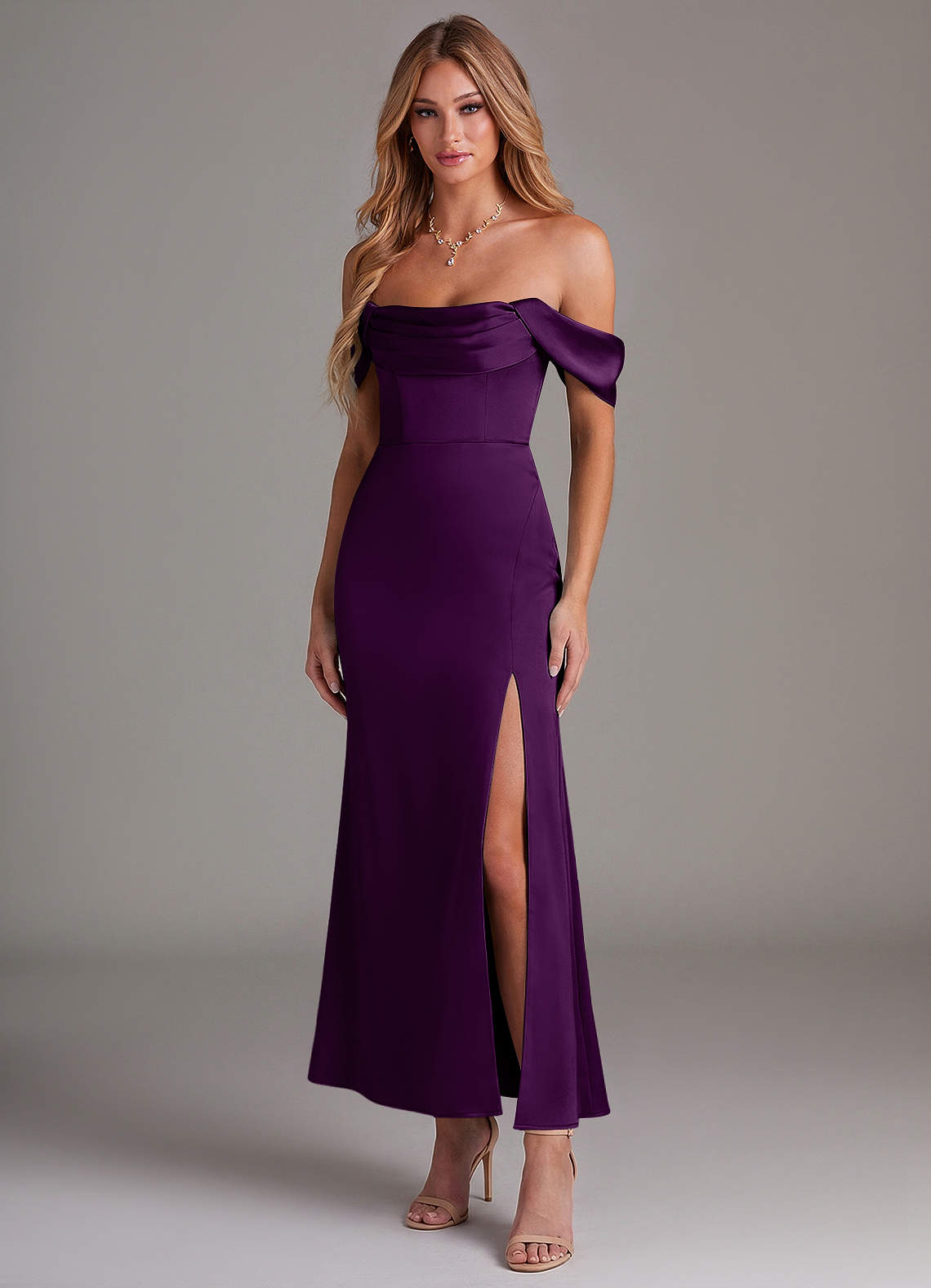Grape Mermaid Off the Shoulder Stretch Satin Dress