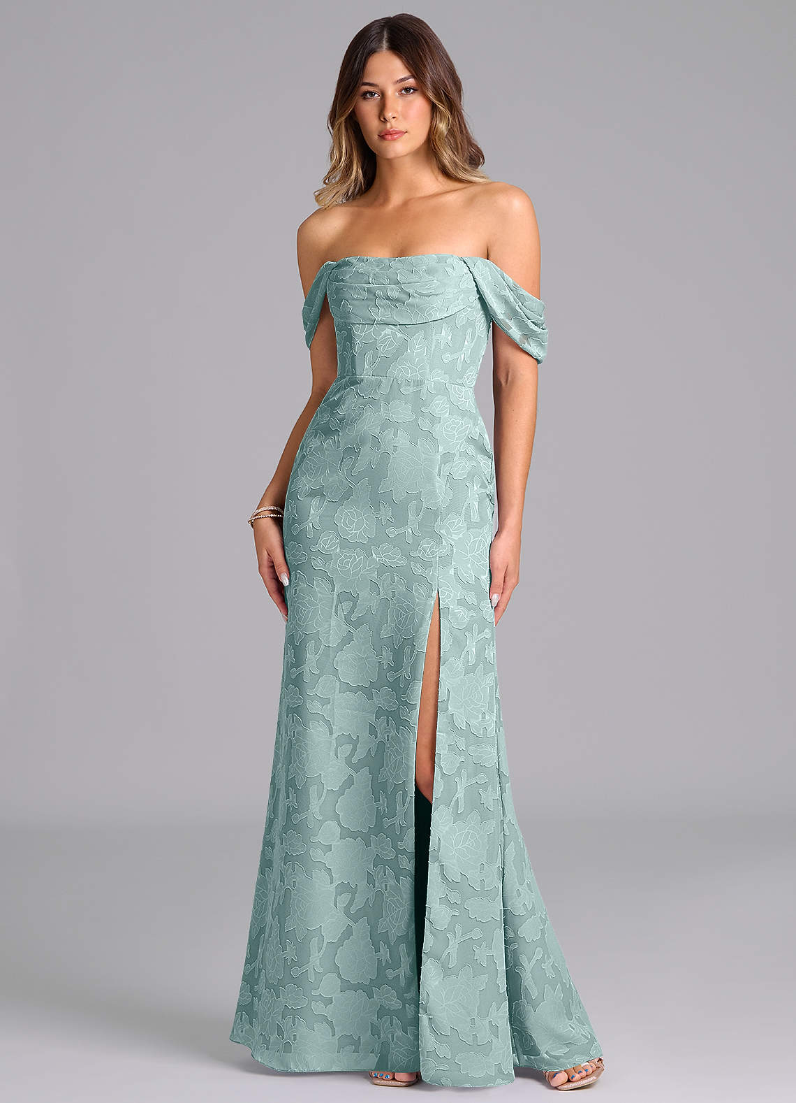 Mist A-Line Off the Shoulder Floral Burnout Convertible Dress