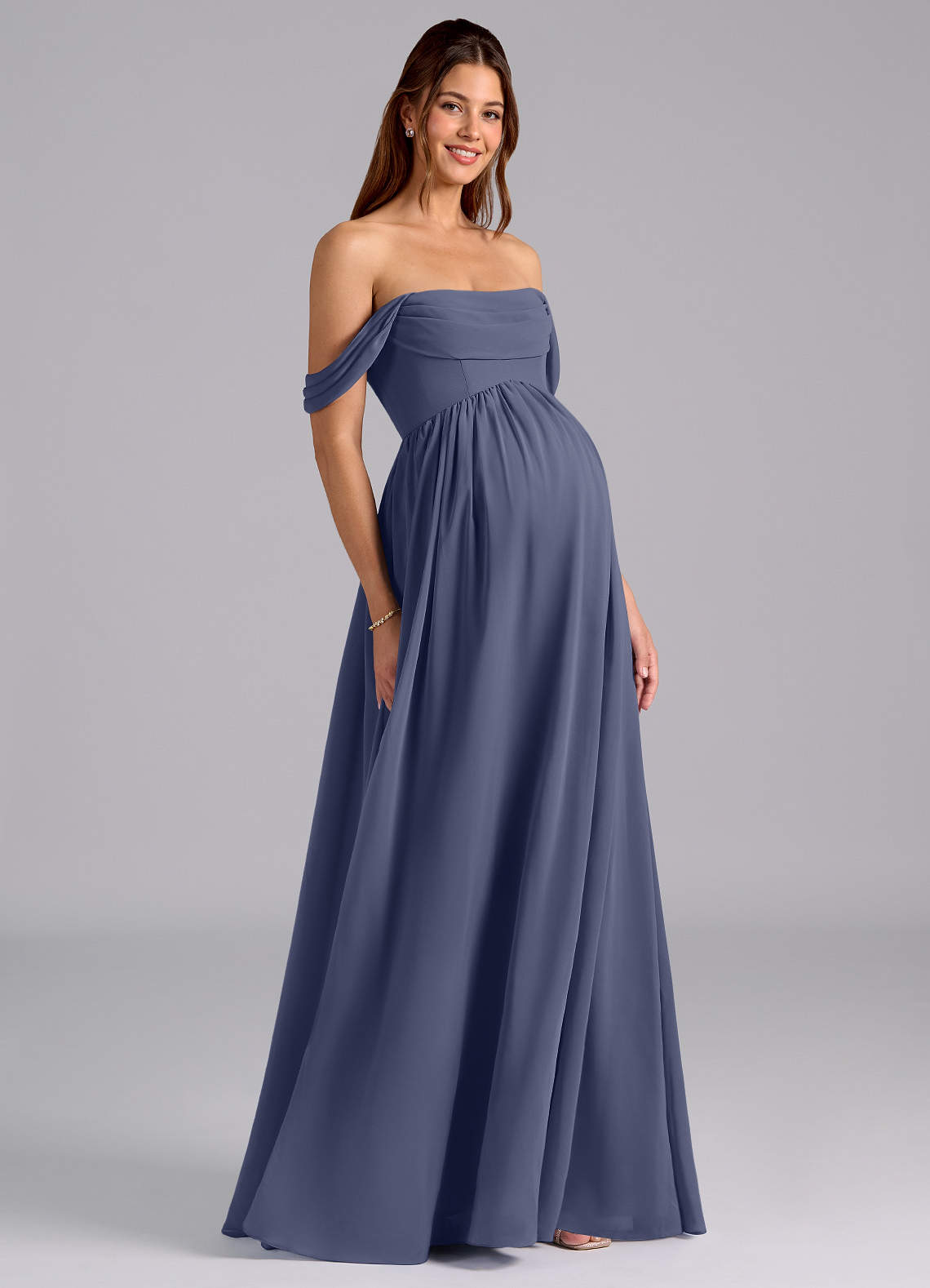 A-Line Pleated Chiffon Floor-Length Dress Stormy