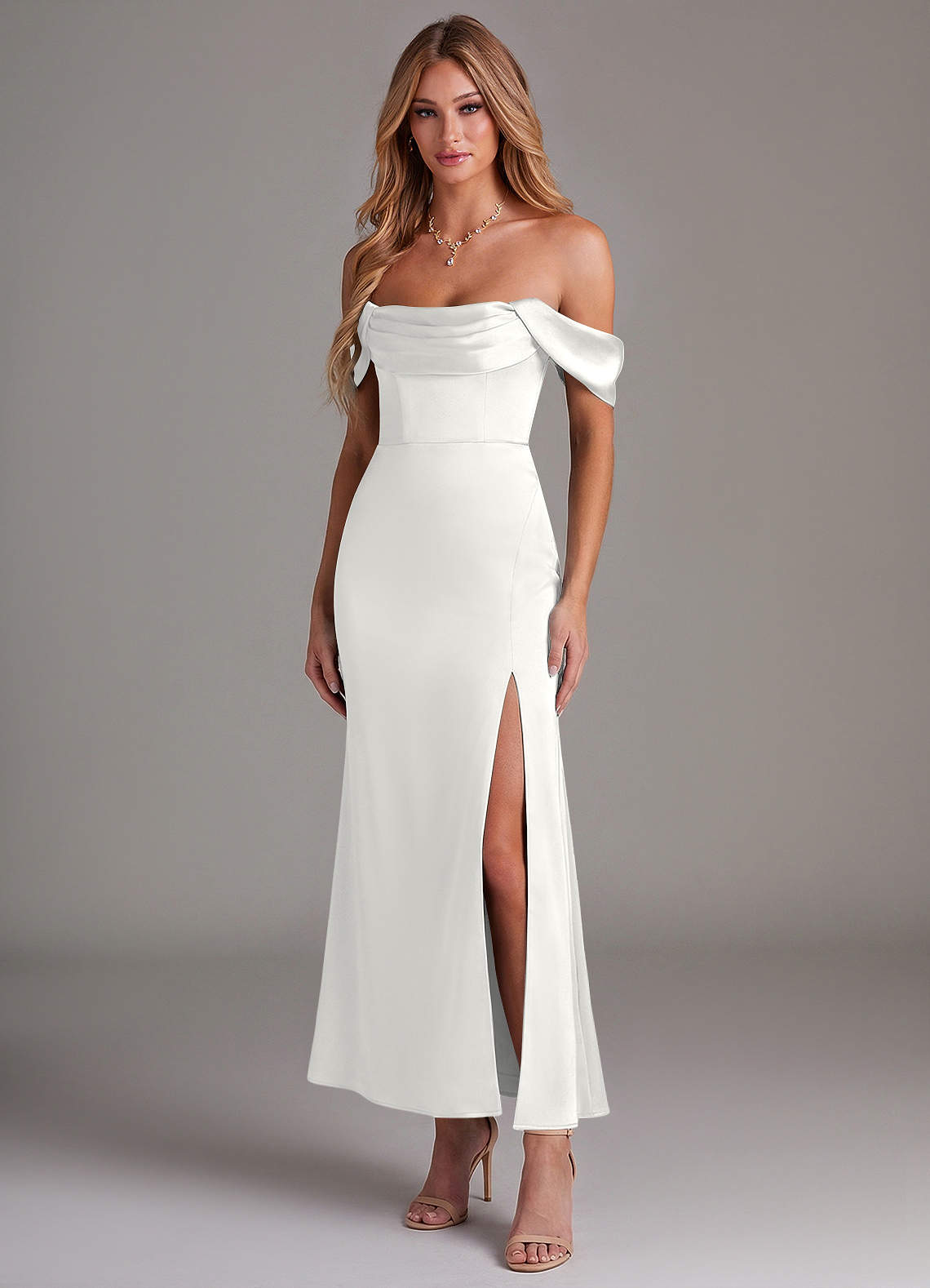 White Mermaid Off the Shoulder Stretch Satin Dress