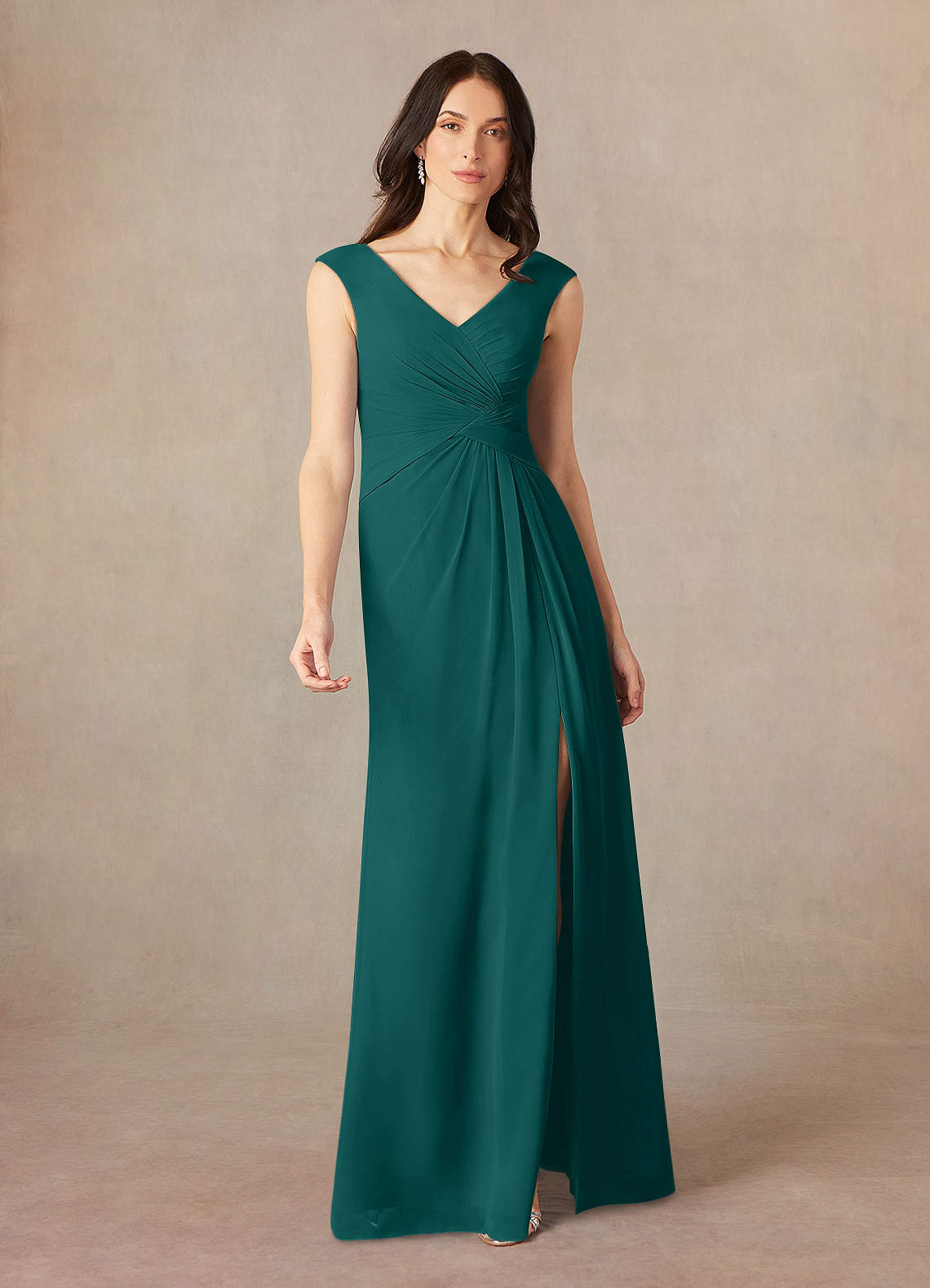 Azazie Sally Final Sale Peacock A-Line V-Neck Pleated Chiffon Dress image1