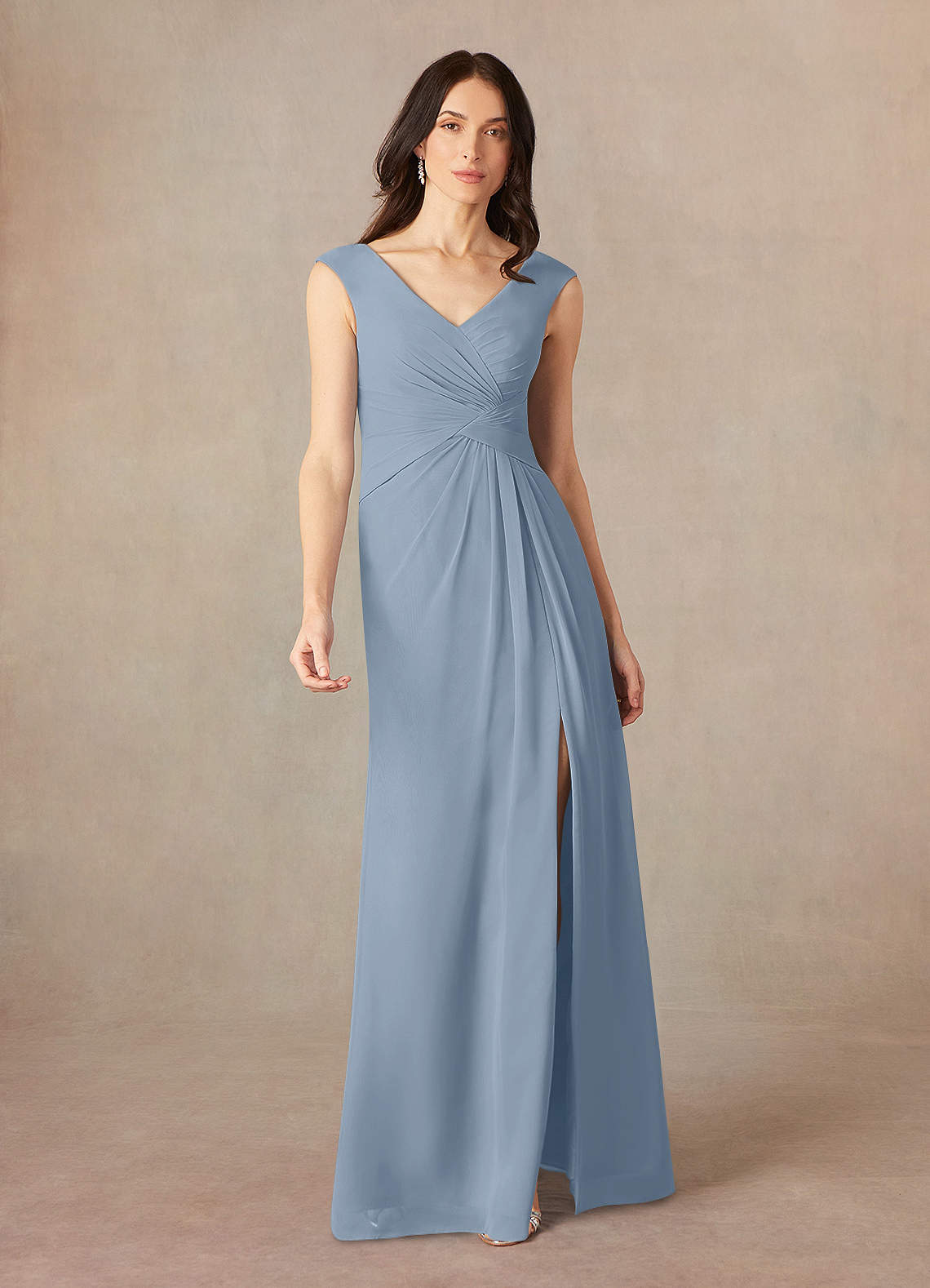 Dusty Blue A-Line V-Neck Pleated Chiffon Dress